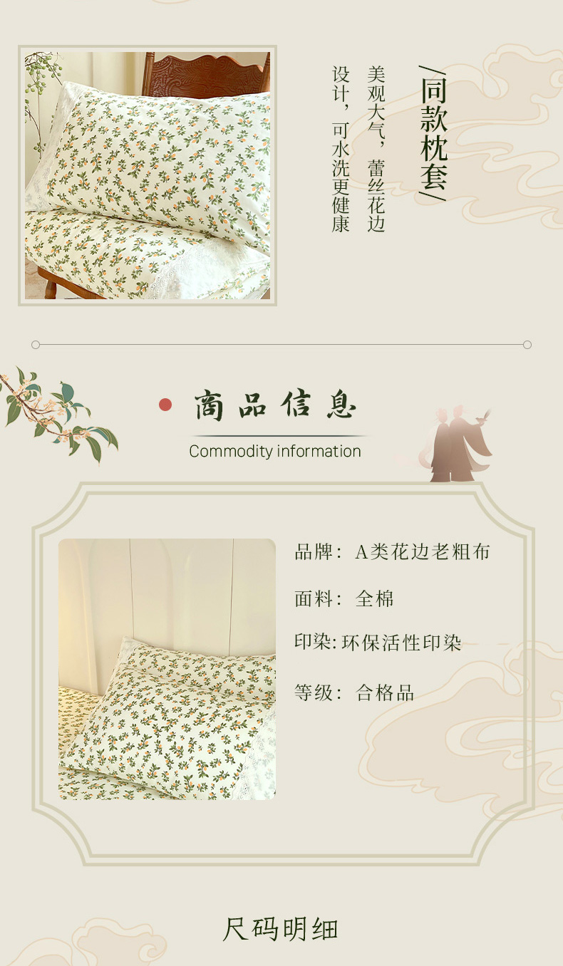 商品名称:春皖家纺 2026春夏新品老粗布花边款单枕套 枕套单件 花边-翠林音