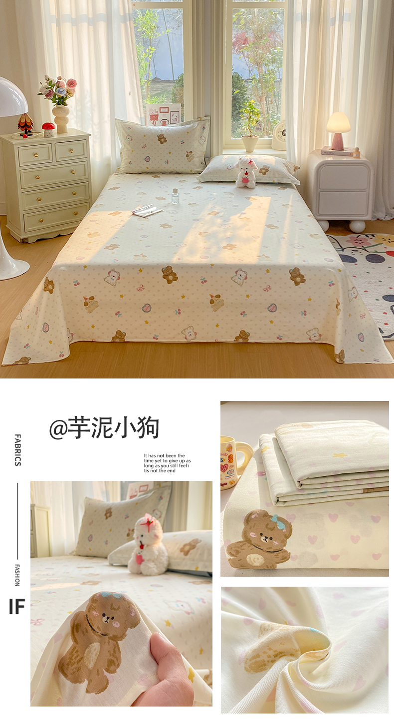 • 91家纺网 家纺一手货源 找家纺 花梦欣 2026新款全棉印花单品系列3简约卡通款-单床单 韩系小萌物