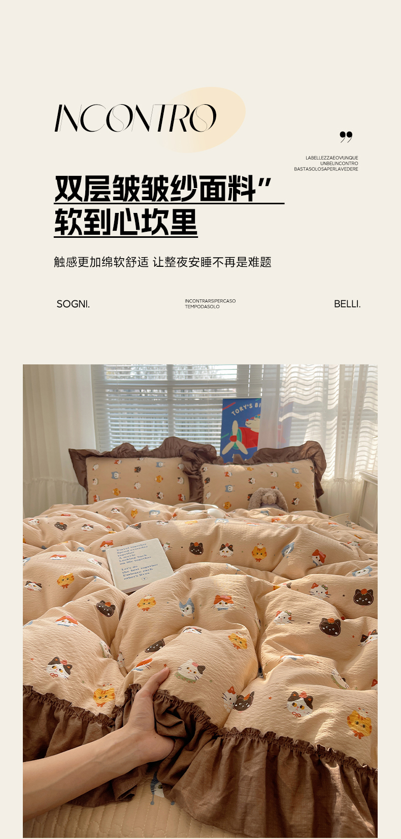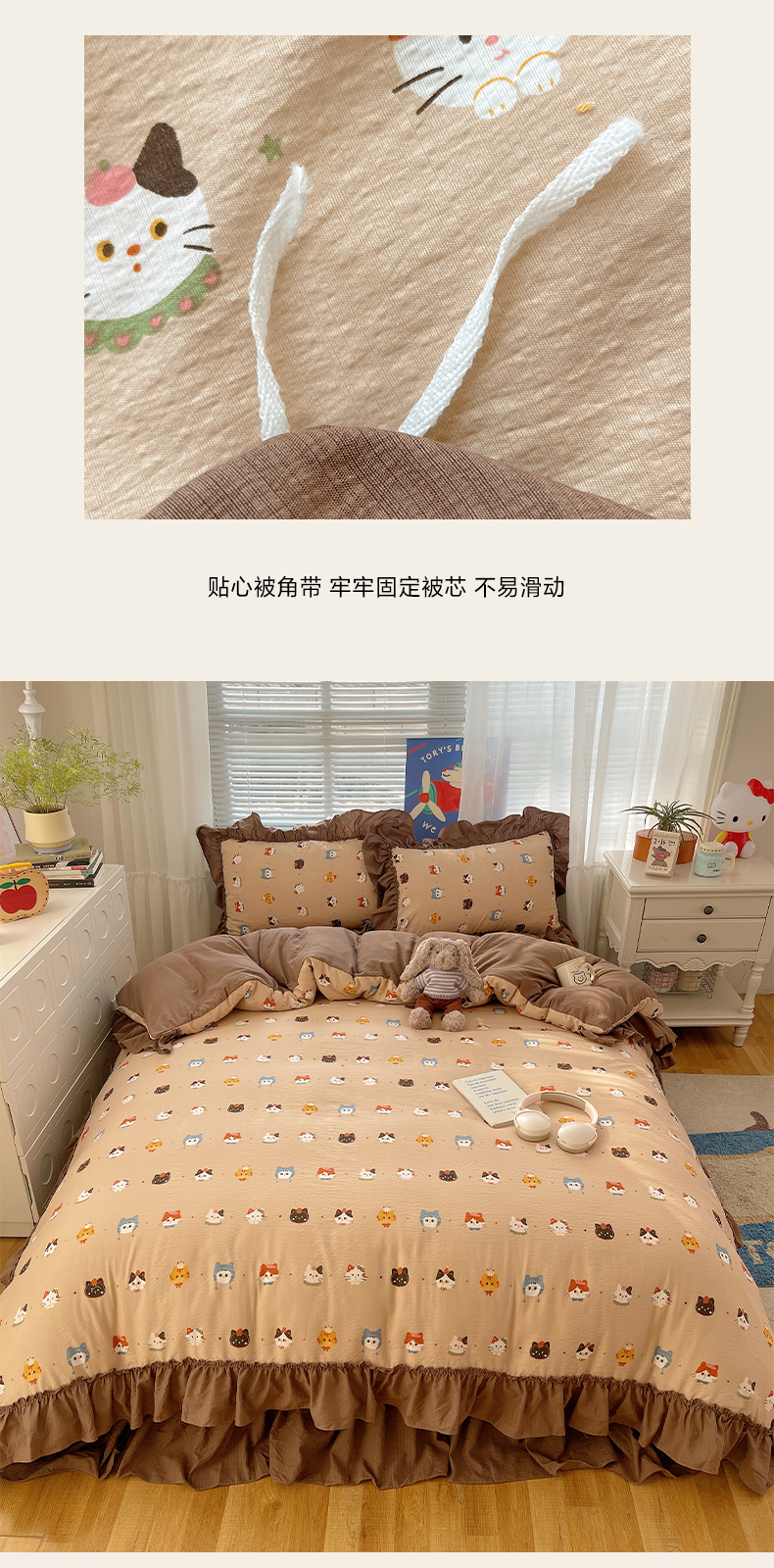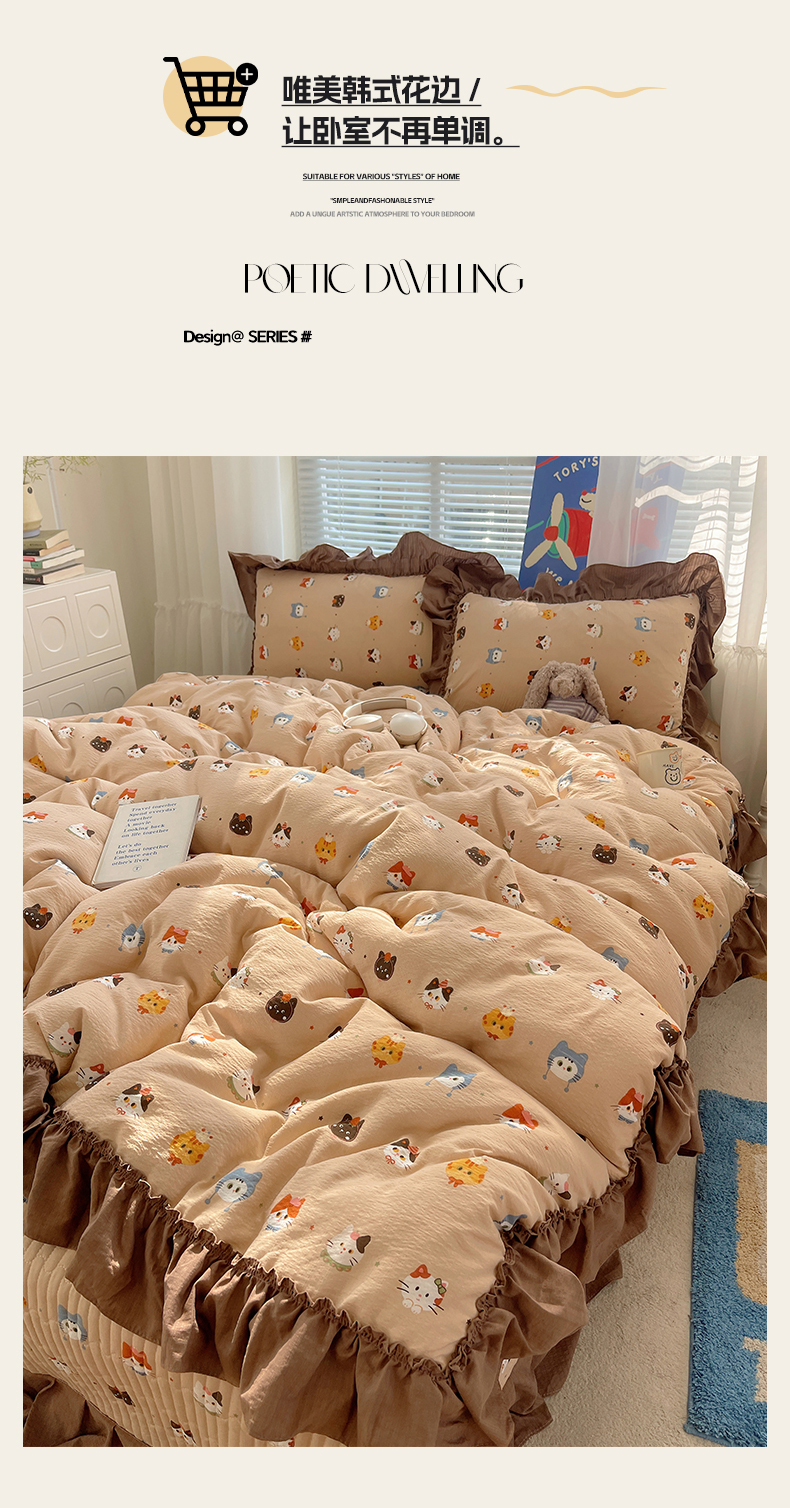 商品名称:韩都家居 2026新款云感双层纱床盖四件套 梦幻乐园