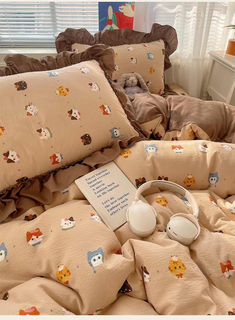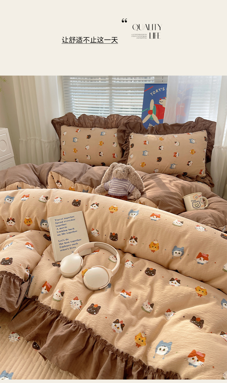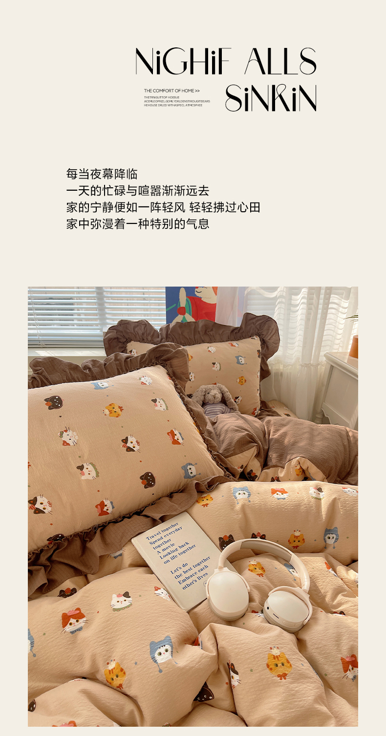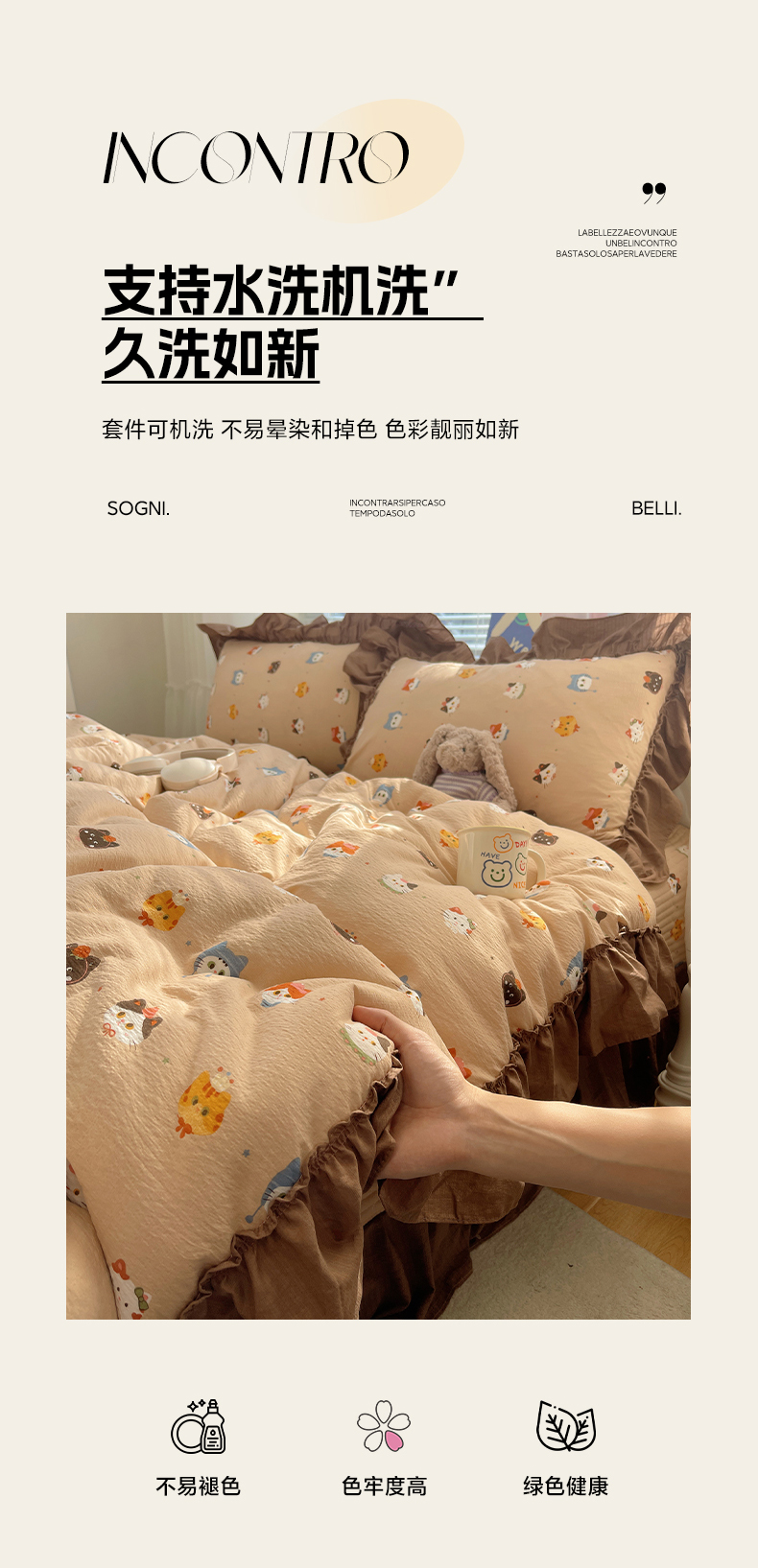 商品名称:韩都家居 2026新款云感双层纱床盖四件套 梦幻乐园