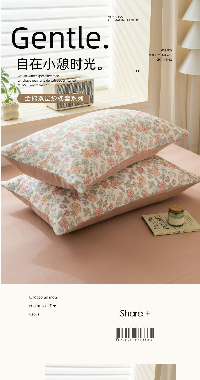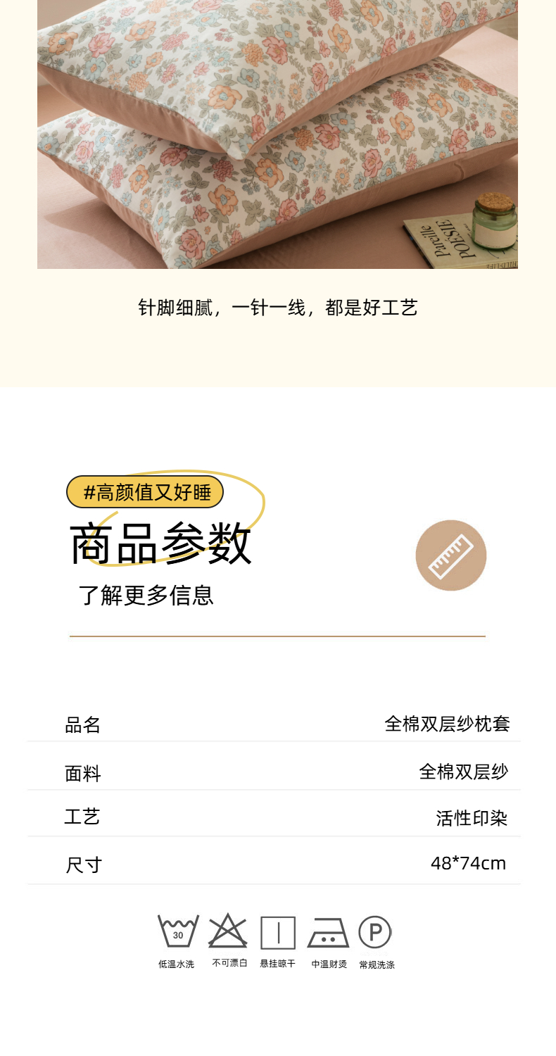 • 91家纺网 家纺一手货源 找家纺 雯雨家纺 2026新款A类全棉有氧双层纱单枕套 全棉双层纱枕套-香水繁花-兰
