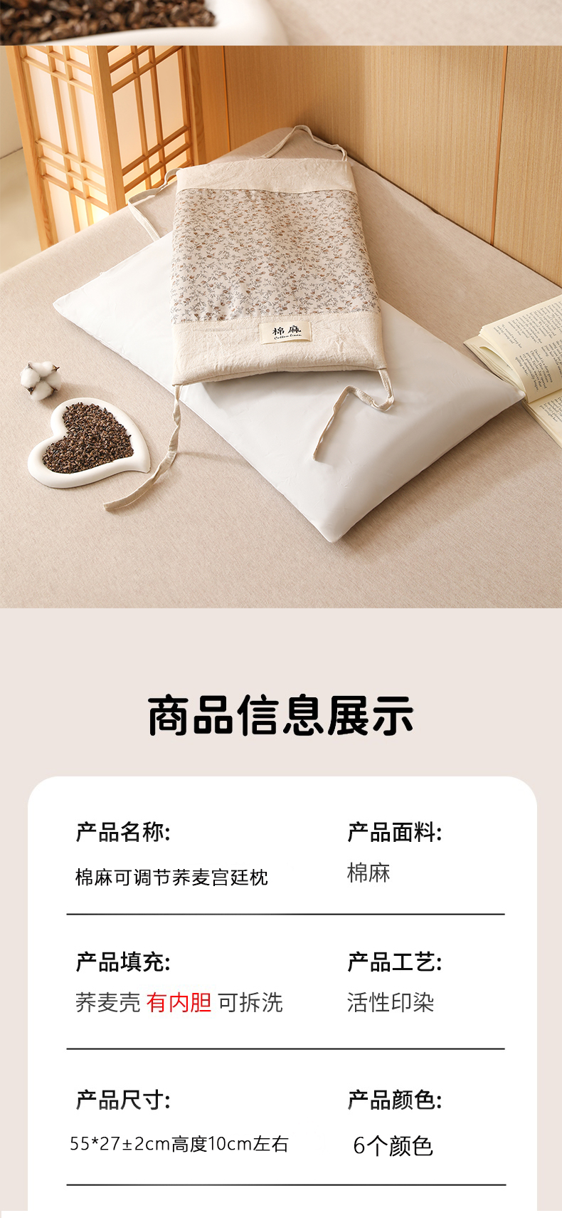 当前位置: 91家纺网 > 商品网购 > 枕头/枕芯/保健枕/颈椎枕 > 枕头枕芯 > 芯洲 2026新款古典宫廷荞麦枕棉麻款可调节高度绑带款荞麦助眠枕头枕芯 春遇-锈红