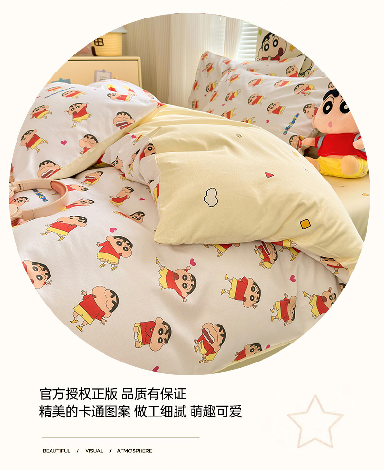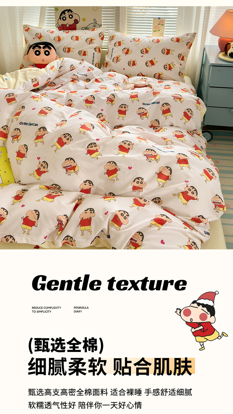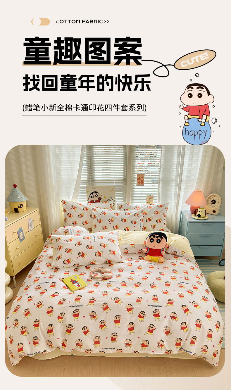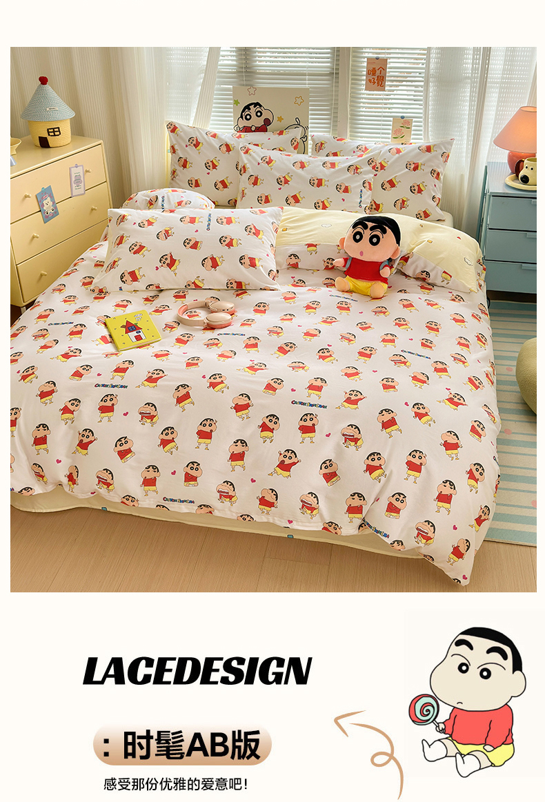 商品名称:曼之夏 2026新款全棉卡通印花四件套系列-蜡笔小新 搞怪小新