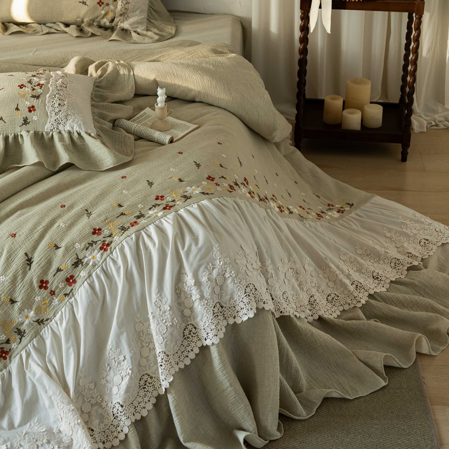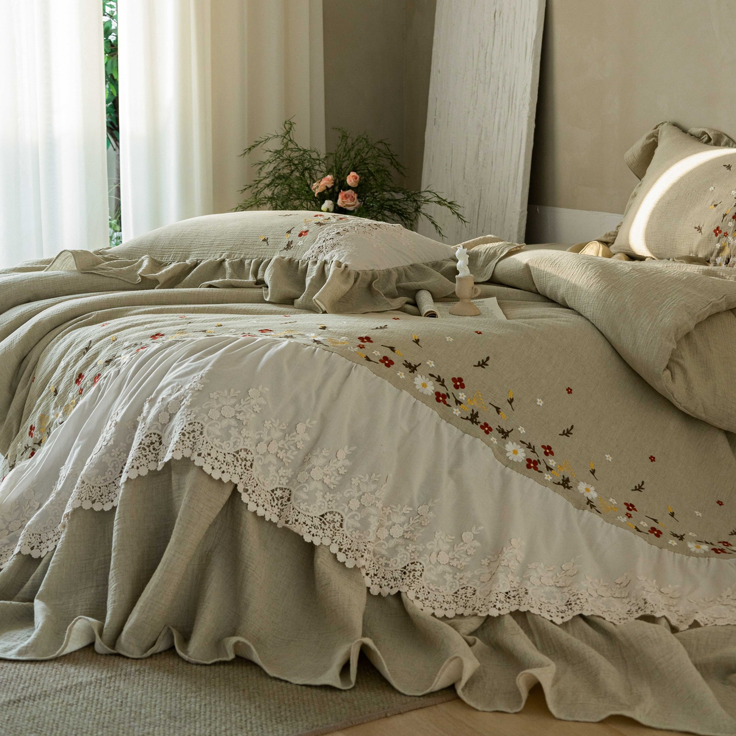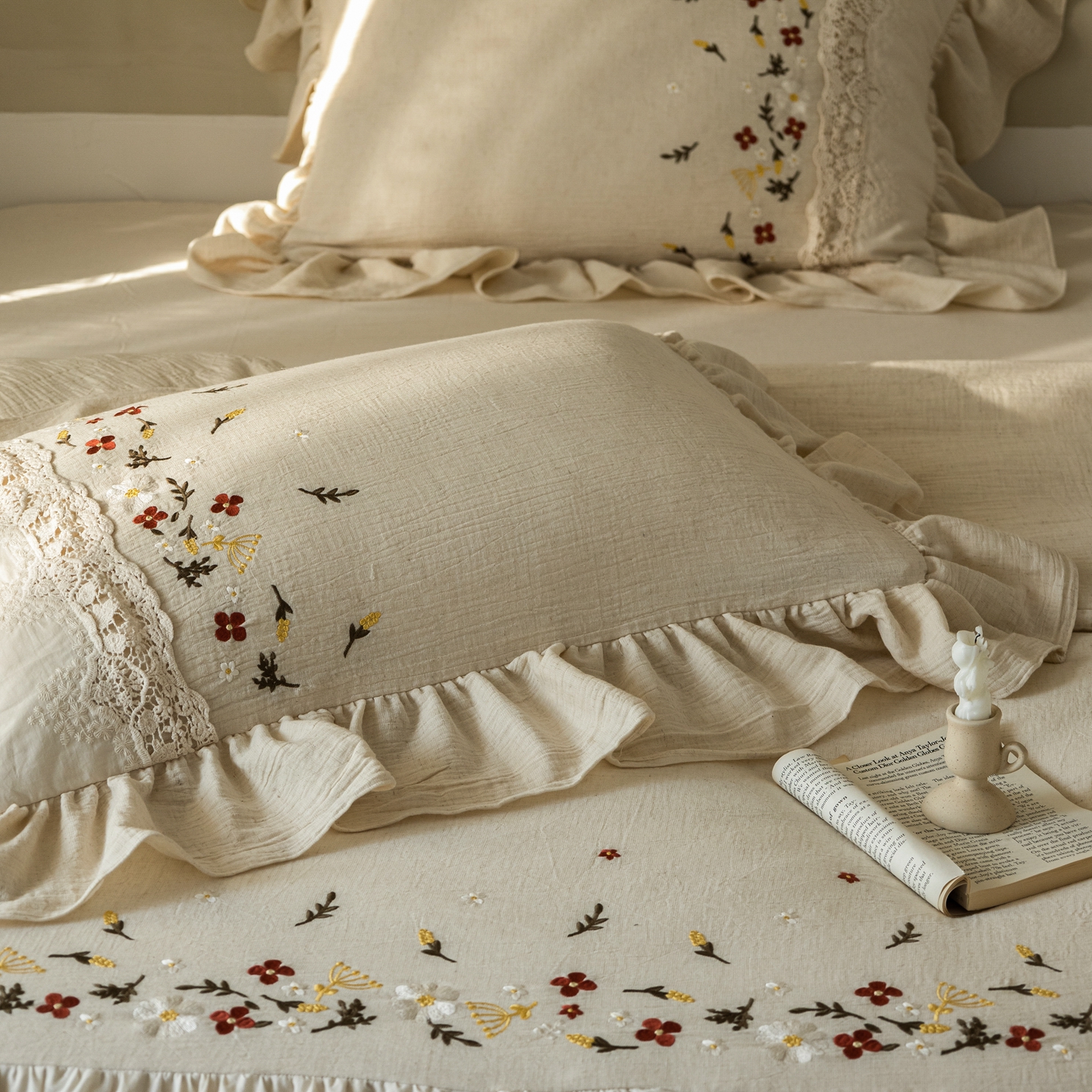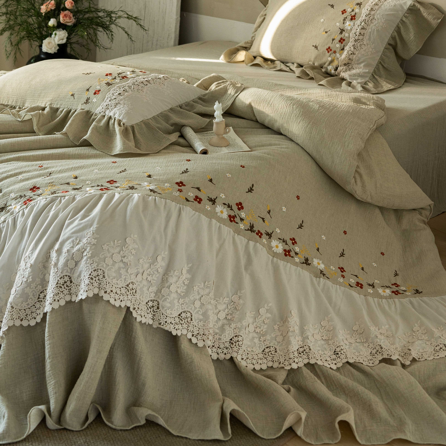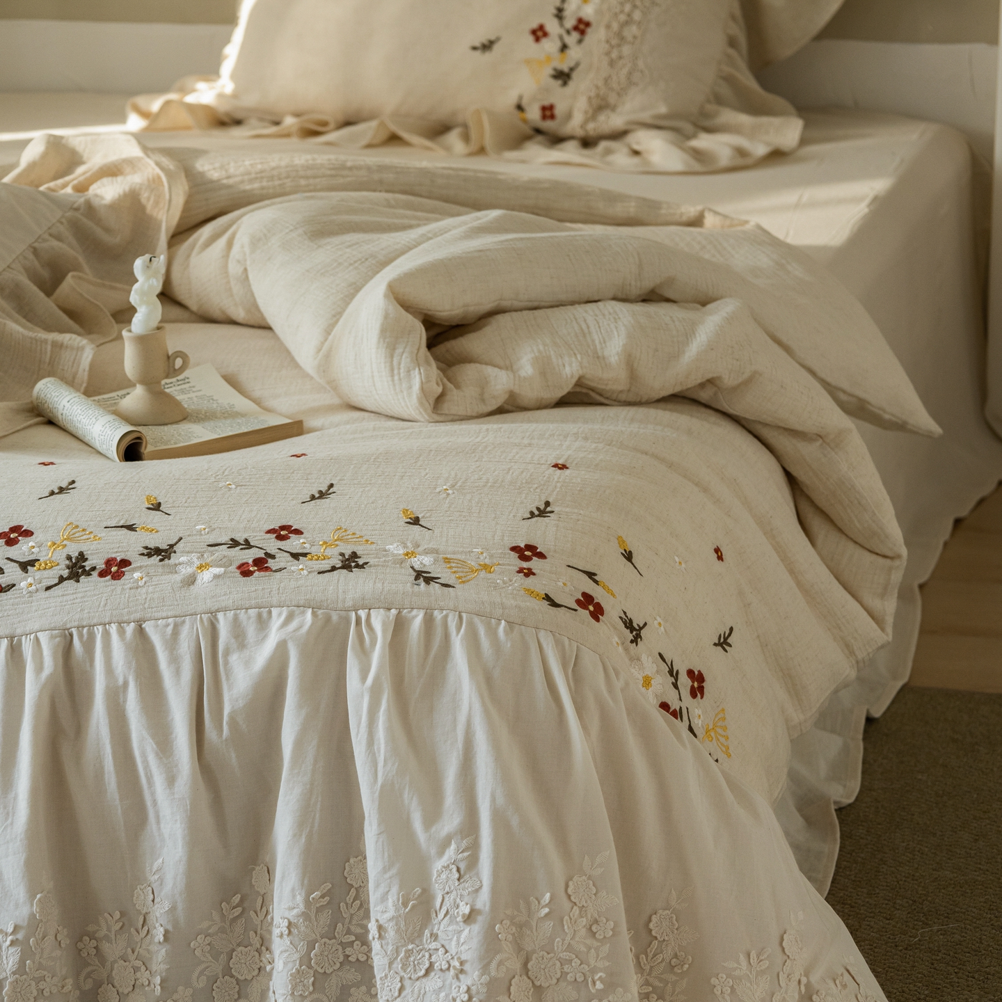 当前位置: 91家纺网 > 商品网购 > 床品套件 > 四件套 > 其它四件套 > (总)觅糖家纺 2026春夏新款棉麻皱皱纱布毛巾绣四件套-清欢系列