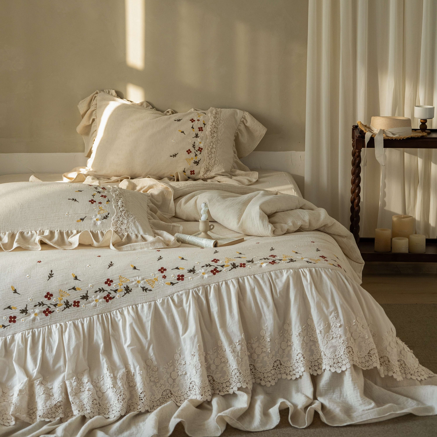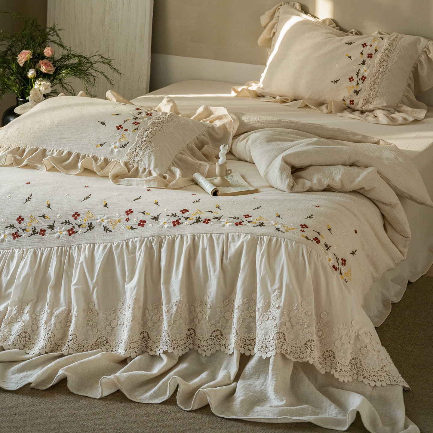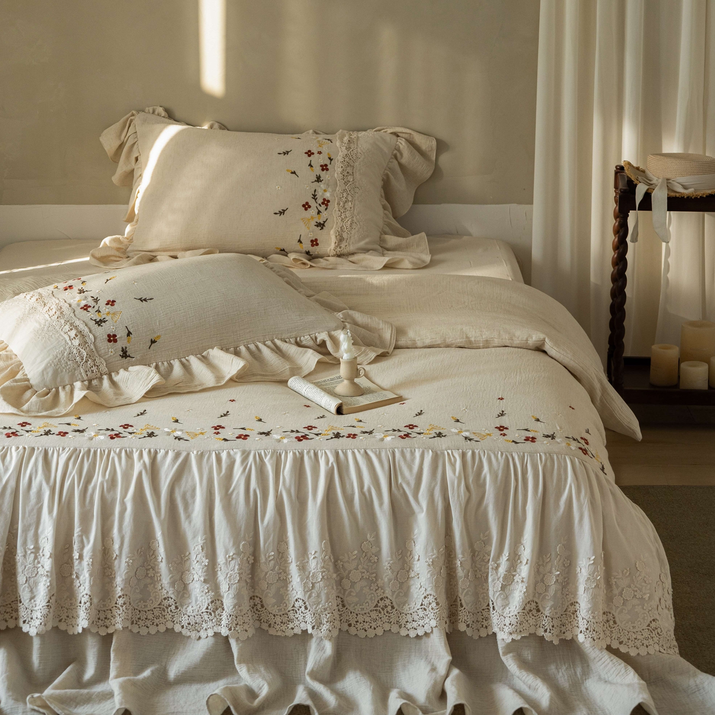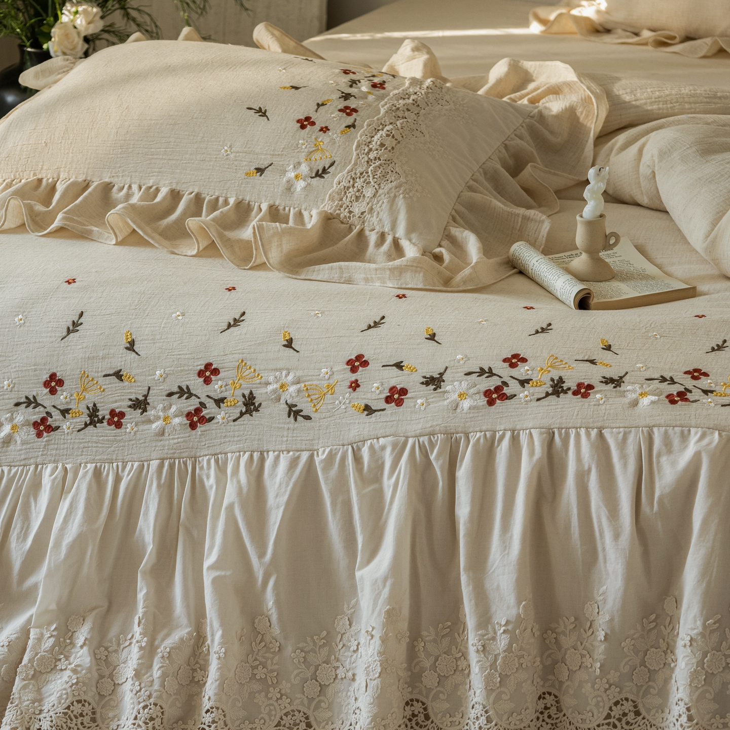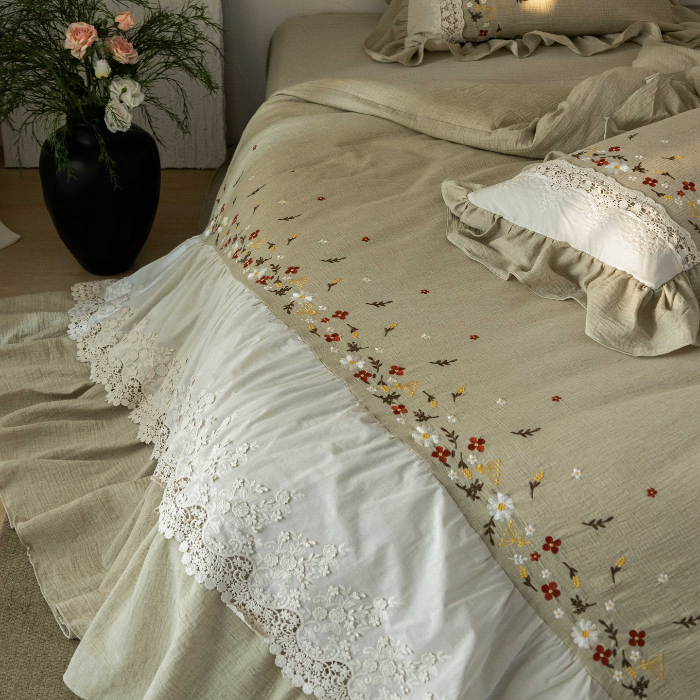 当前位置: 91家纺网 > 商品网购 > 床品套件 > 四件套 > 其它四件套 > (总)觅糖家纺 2026春夏新款棉麻皱皱纱布毛巾绣四件套-清欢系列