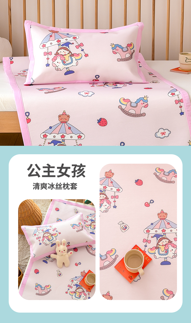 (总)嗨生活 2026新款冰丝枕套儿童枕套幼儿园单枕套枕套单件,波点企鹅,粉红小兔,公主女孩,可爱美人鱼,可爱奶龙,恐龙世界,快乐男孩,西瓜女孩,宇宙超人