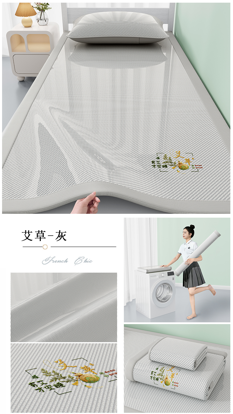 当前位置: 91家纺网 > 商品网购 > 床上用品 > 凉席 > 凉席套件 > 家品罗兰 2026新款夏季A类艾草碳光凉席三明治冰丝凉席家用冰丝席可机洗学生宿舍上下铺空调软席三件套-学生床 叠拍