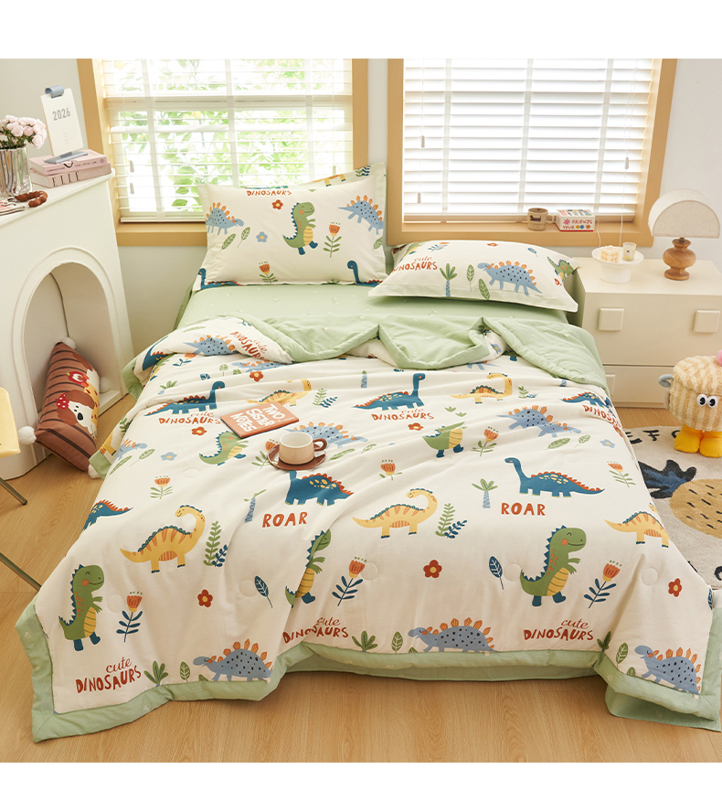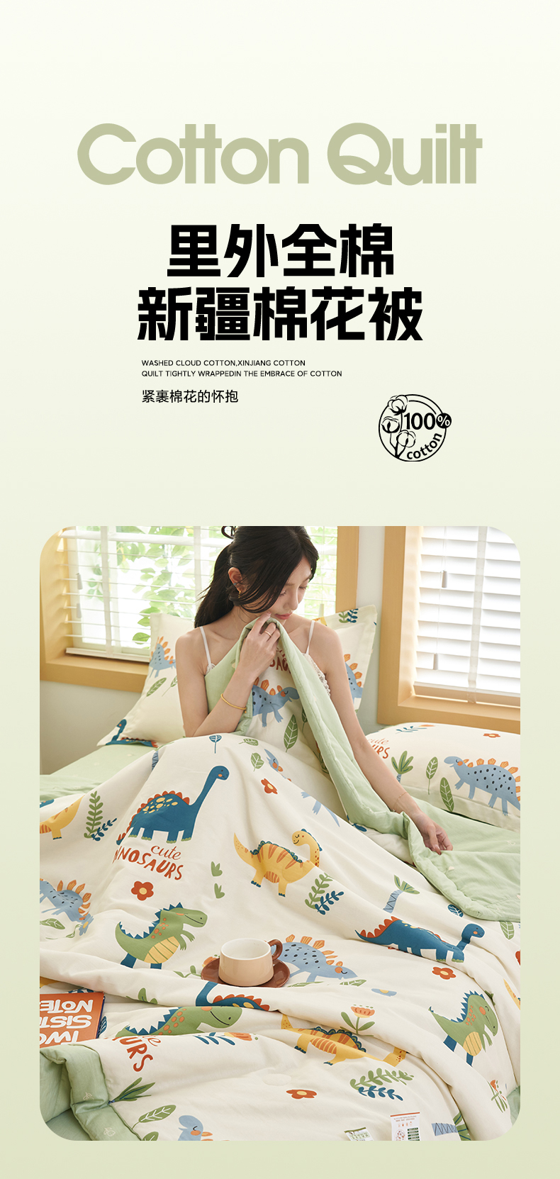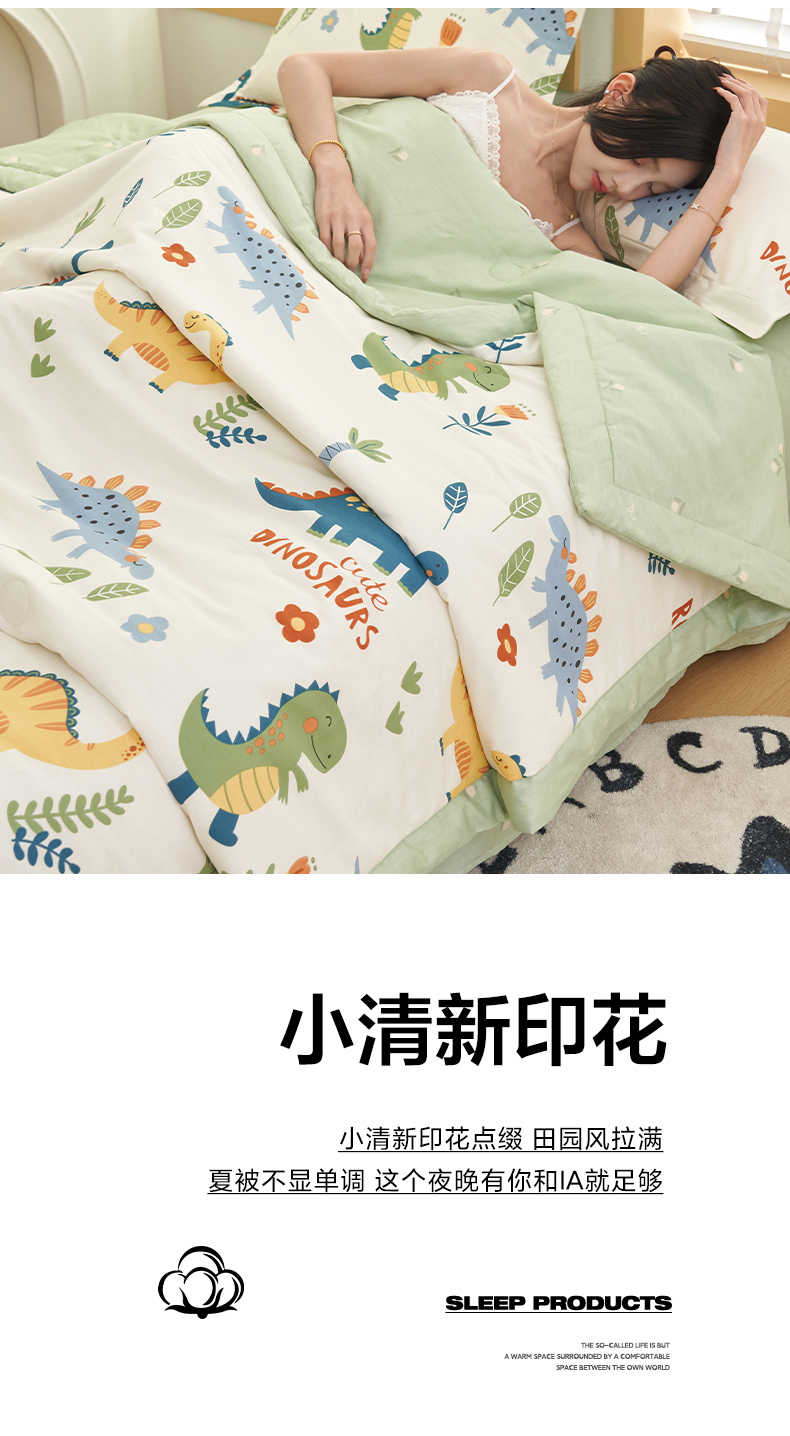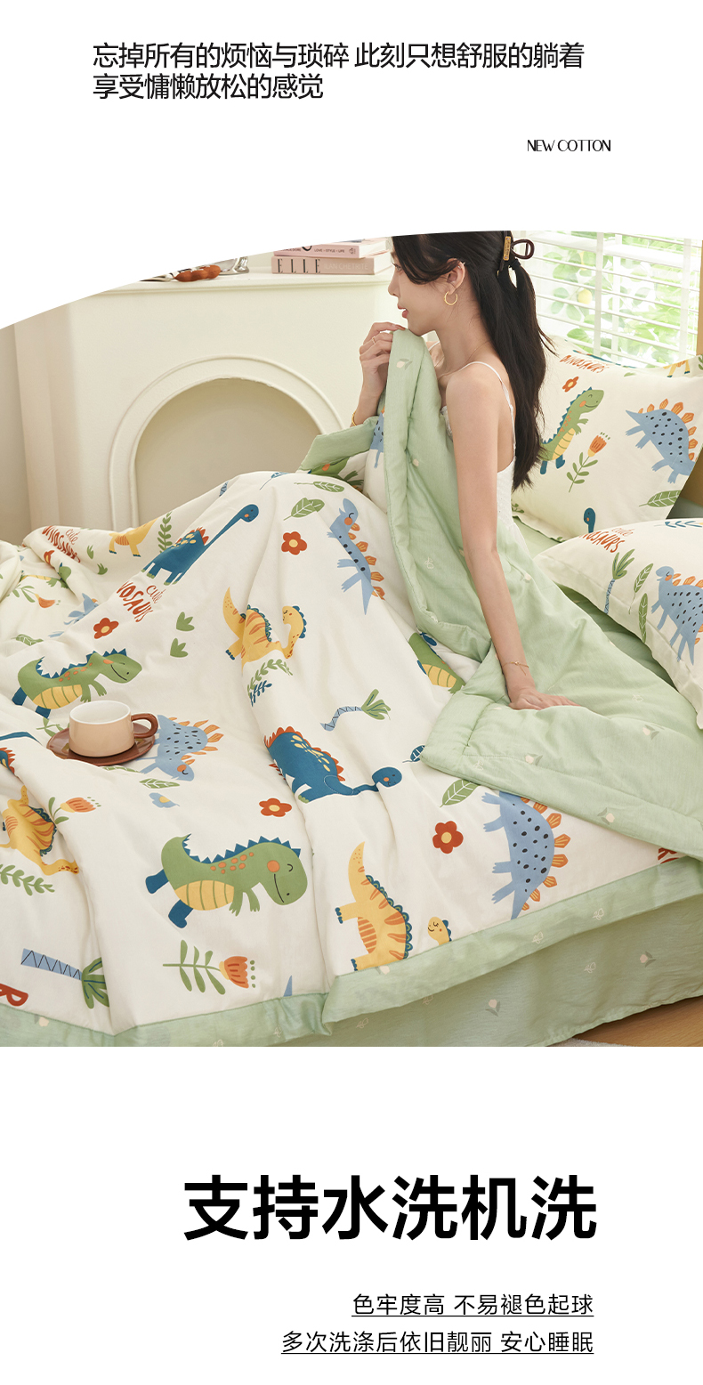 • 91家纺网 家纺一手货源 找家纺 简如 2026新款印花里外全棉夏凉被四件套 恐龙谷