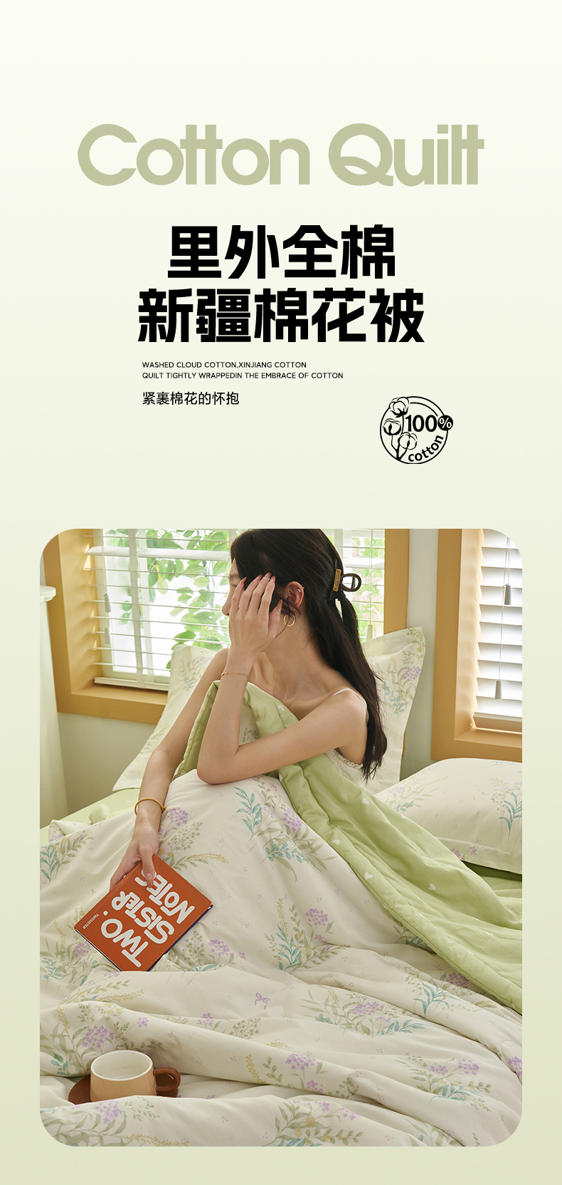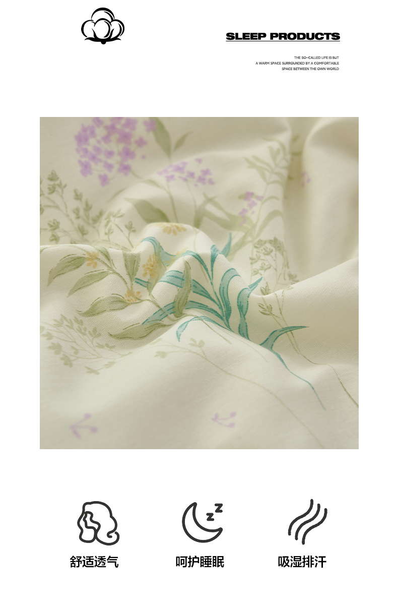 • 91家纺网 家纺一手货源 找家纺 简如 2026新款印花里外全棉夏凉被四件套 森系觅语