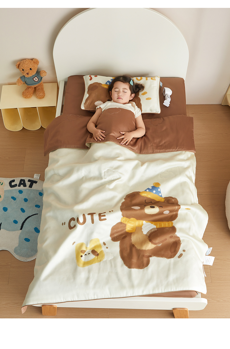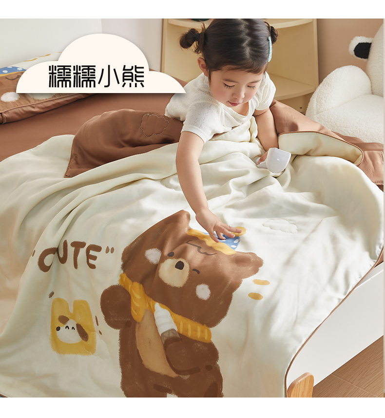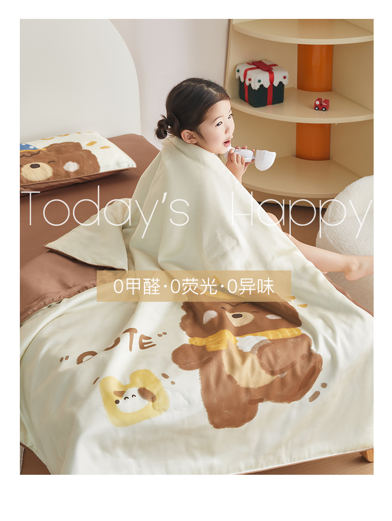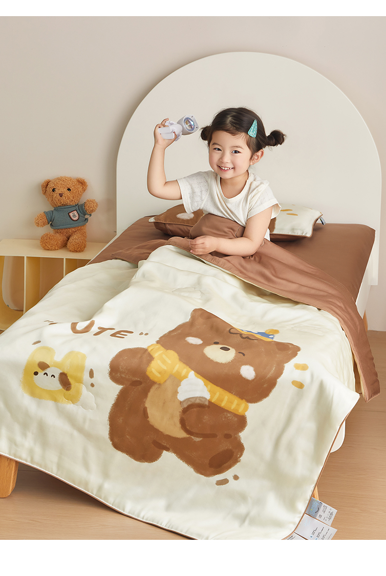 商品名称:荷马之梦 2026新款60s兰精天丝原创数码印花山茶花桑蚕丝儿童夏被 糯糯小熊