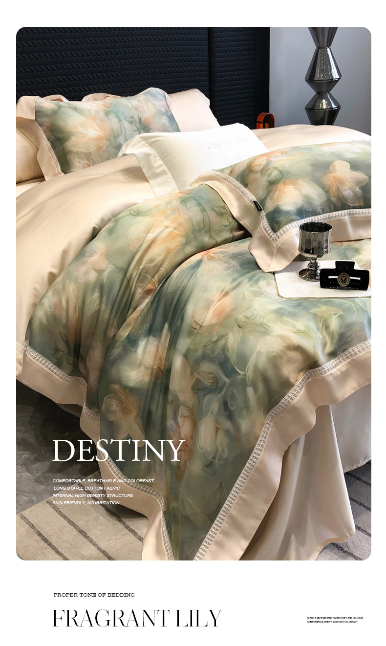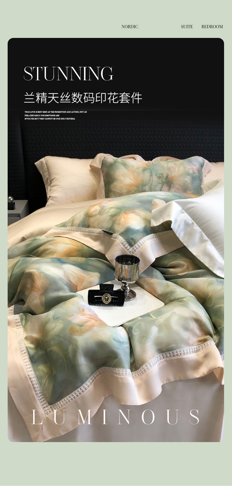 黑白森林2024款 50X50S高支天丝棉数码印花四件套天丝全棉,格伦黄,格伦绿,若瑶灰,羽笛蓝