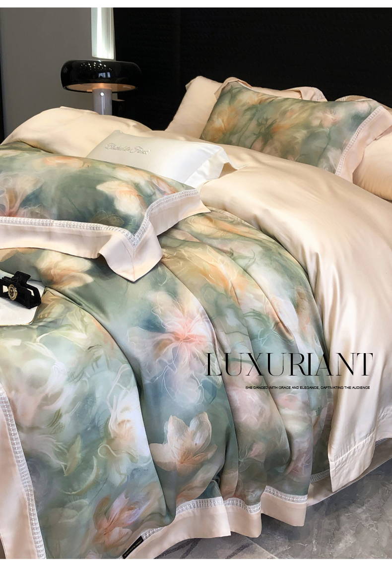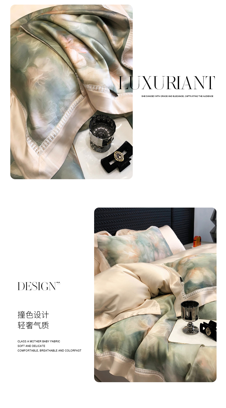 (总)黑白森林 2026新款轻奢天丝印花四件套,未央-绿,未央-紫,邂逅-粉,邂逅-灰,云馥-粉,云馥-紫