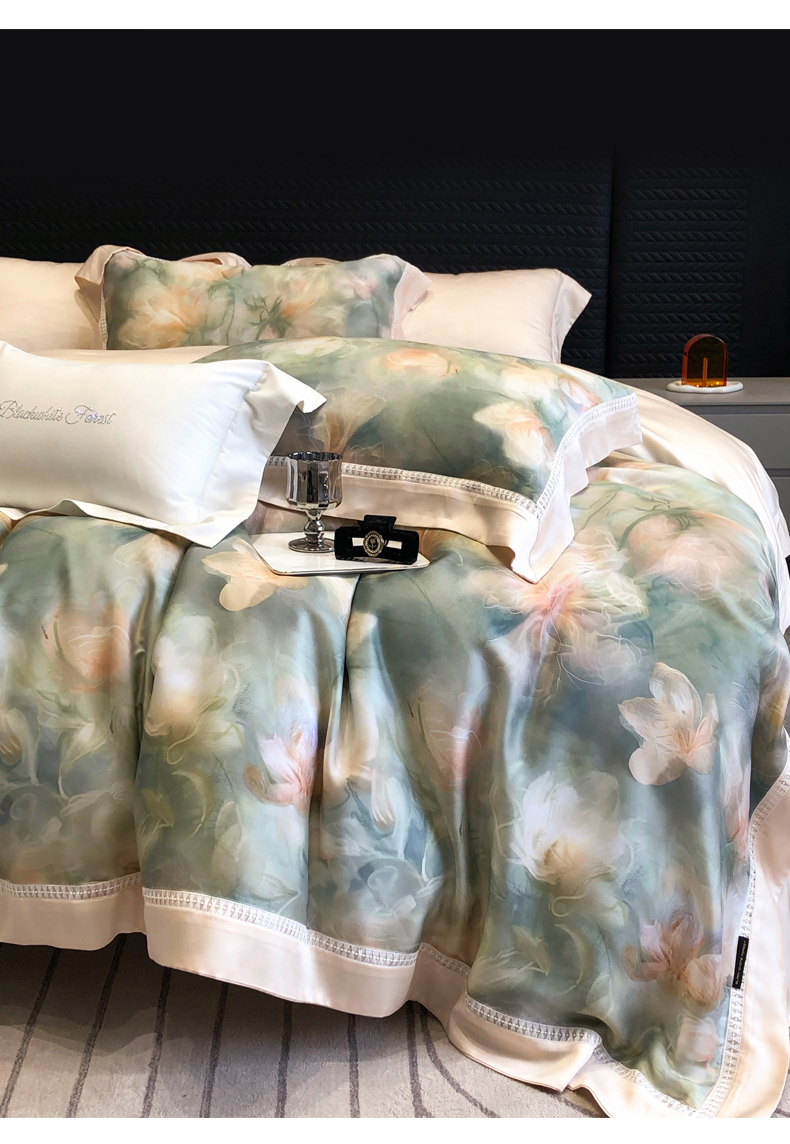 黑白森林 2026新款轻奢天丝印花四件套 梦境-绿