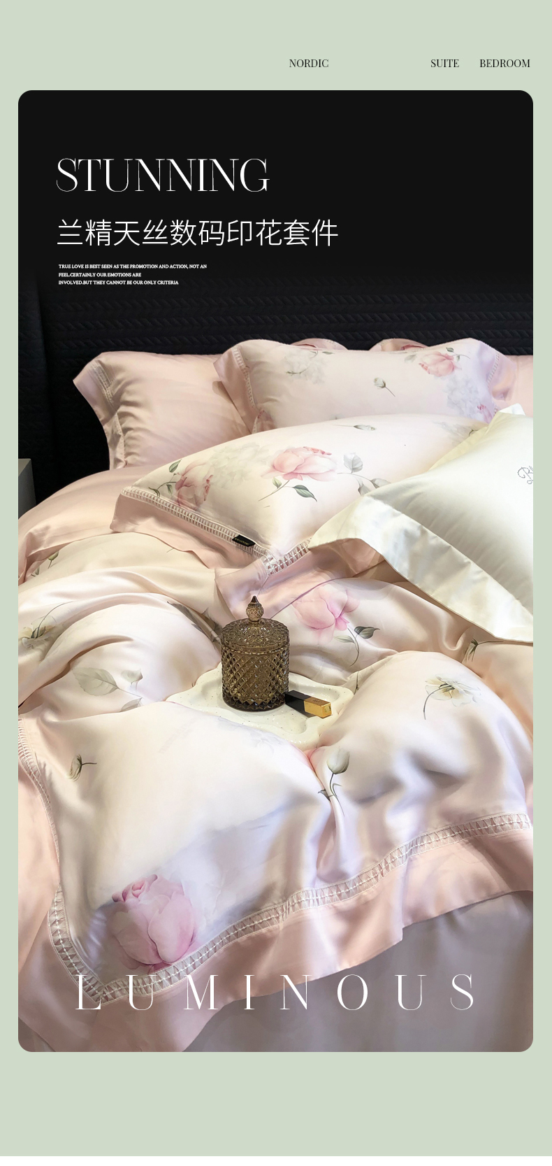 (总)黑白森林 2026新款天丝印花夏被四件套系列,觅羽-粉,觅羽-绿,慕颜,情愫-灰,如愿,薇宁
