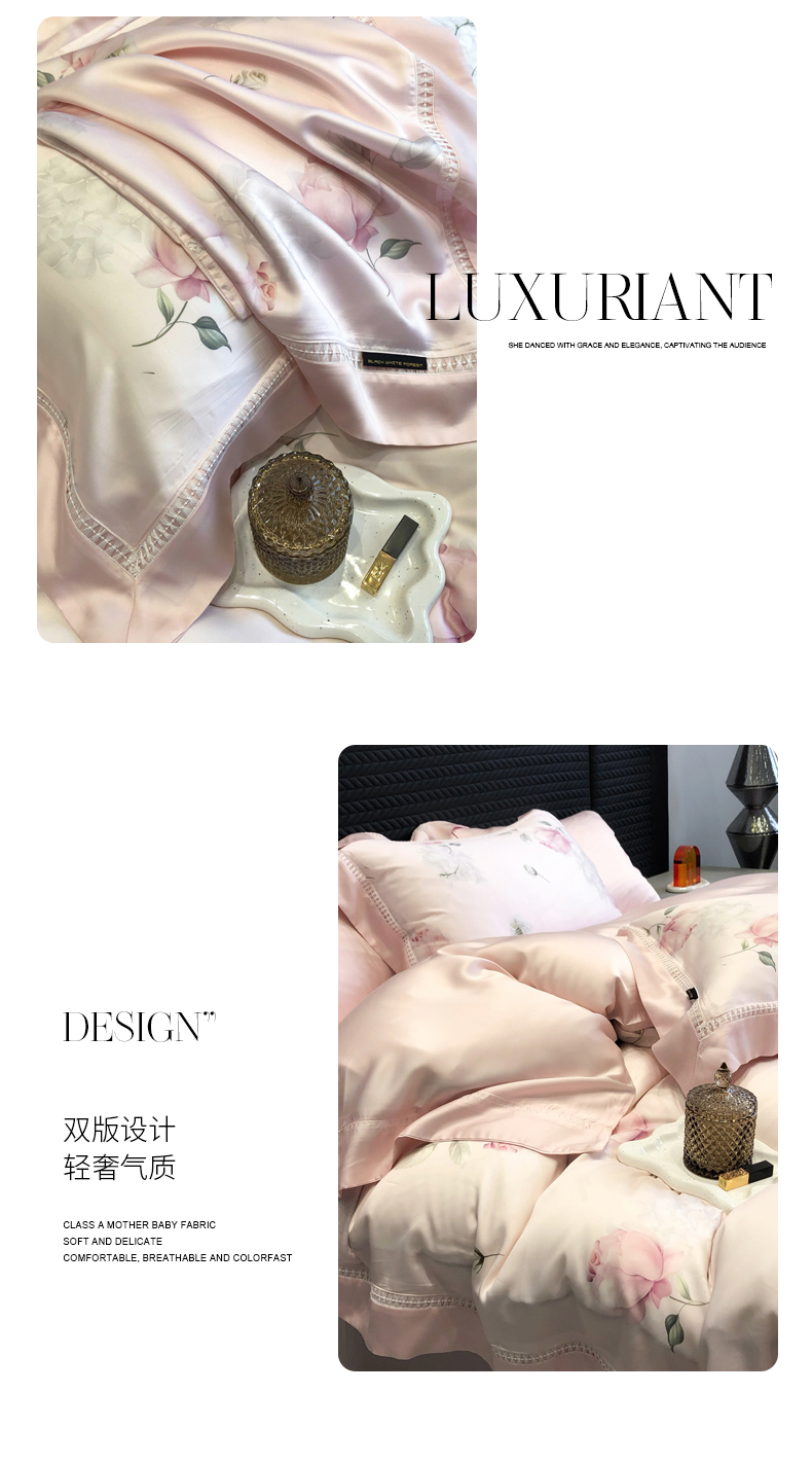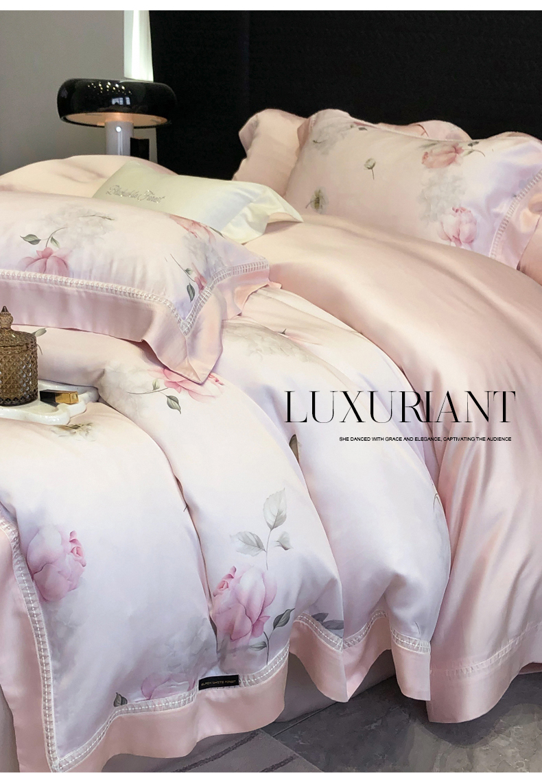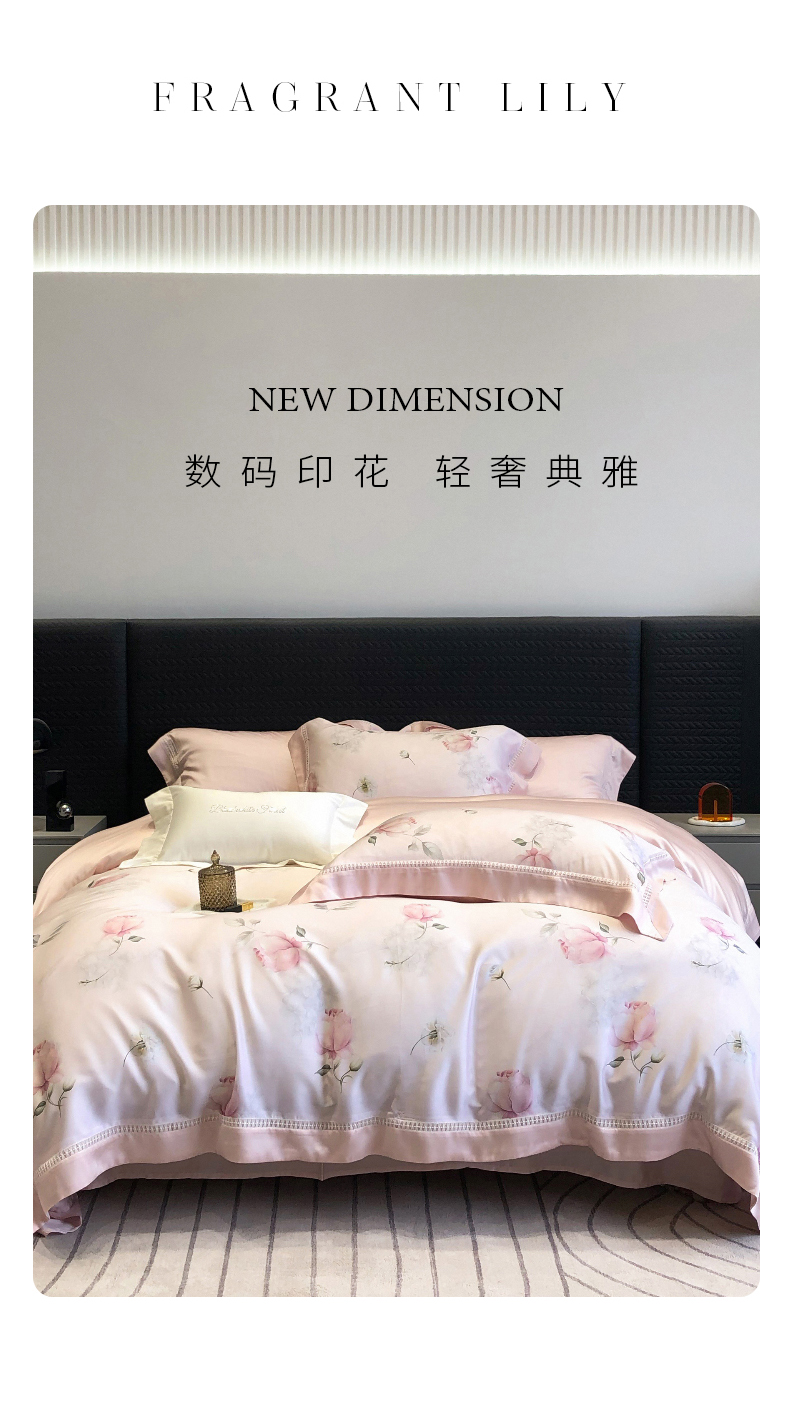 黑白森林 2026新款轻奢天丝印花四件套 邂逅-粉
