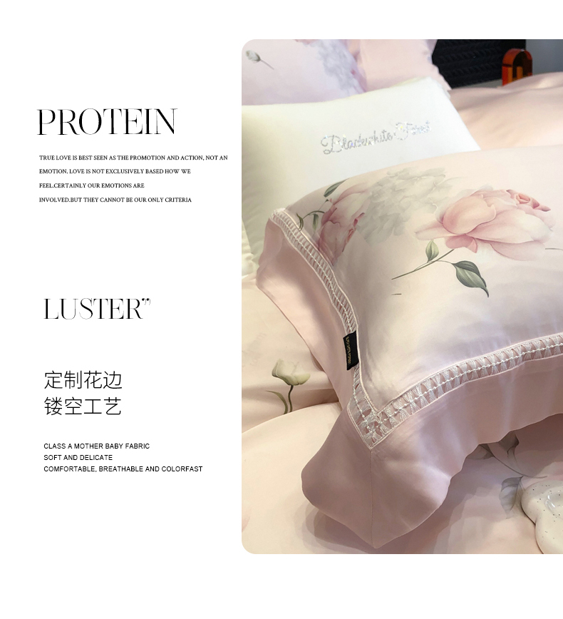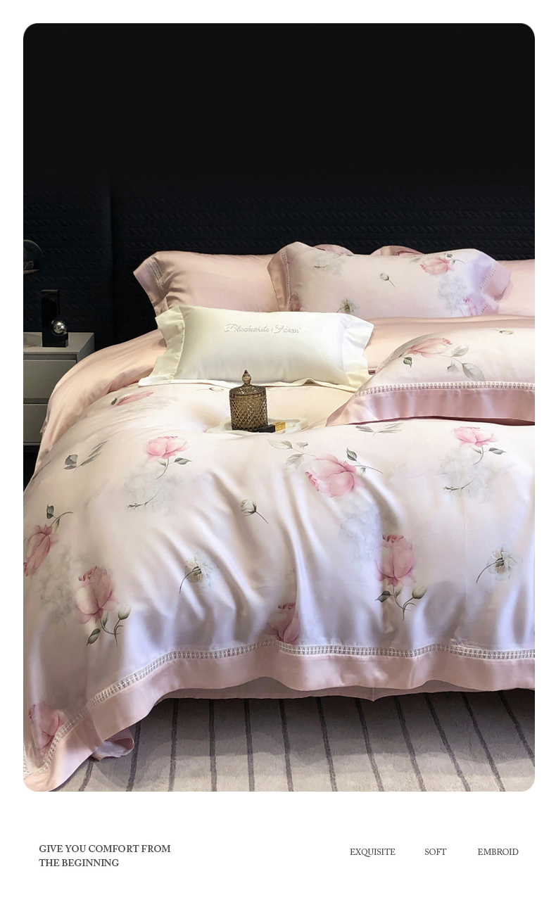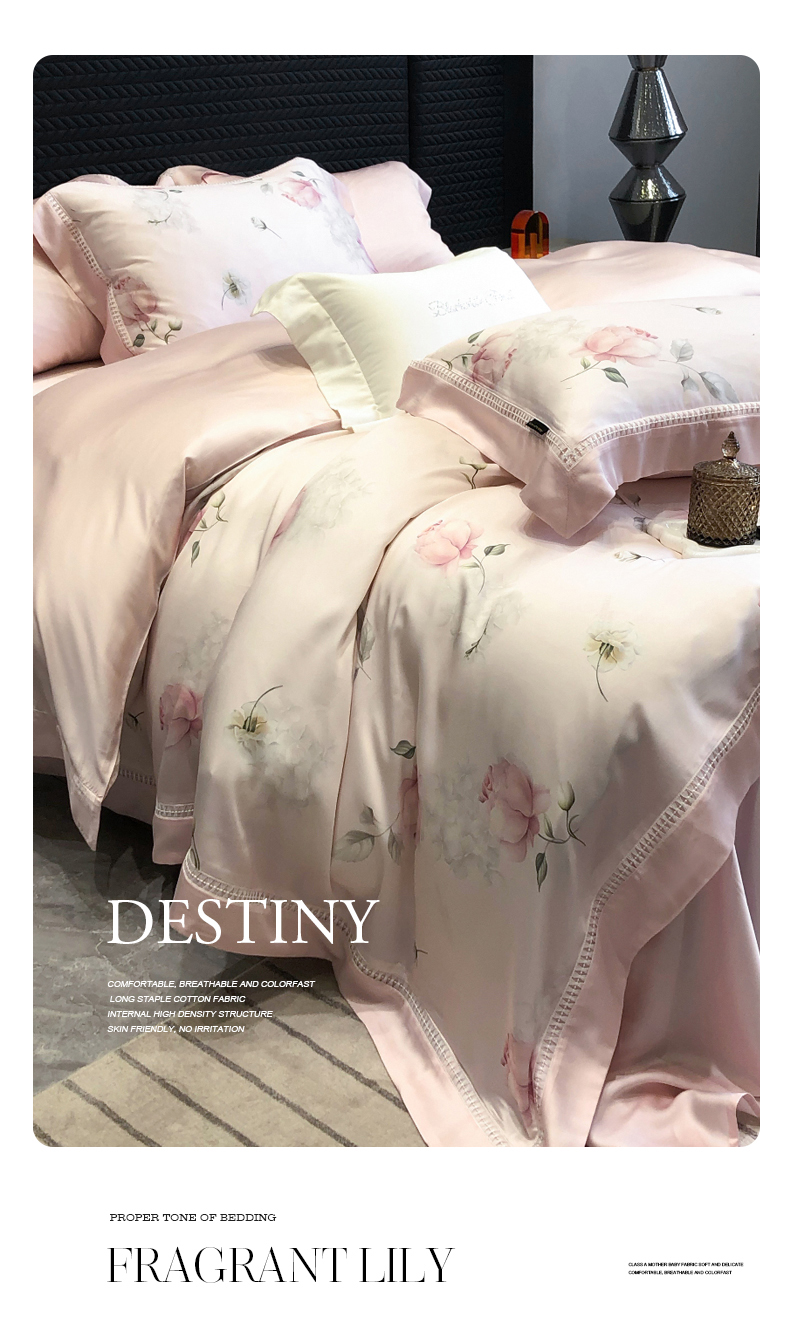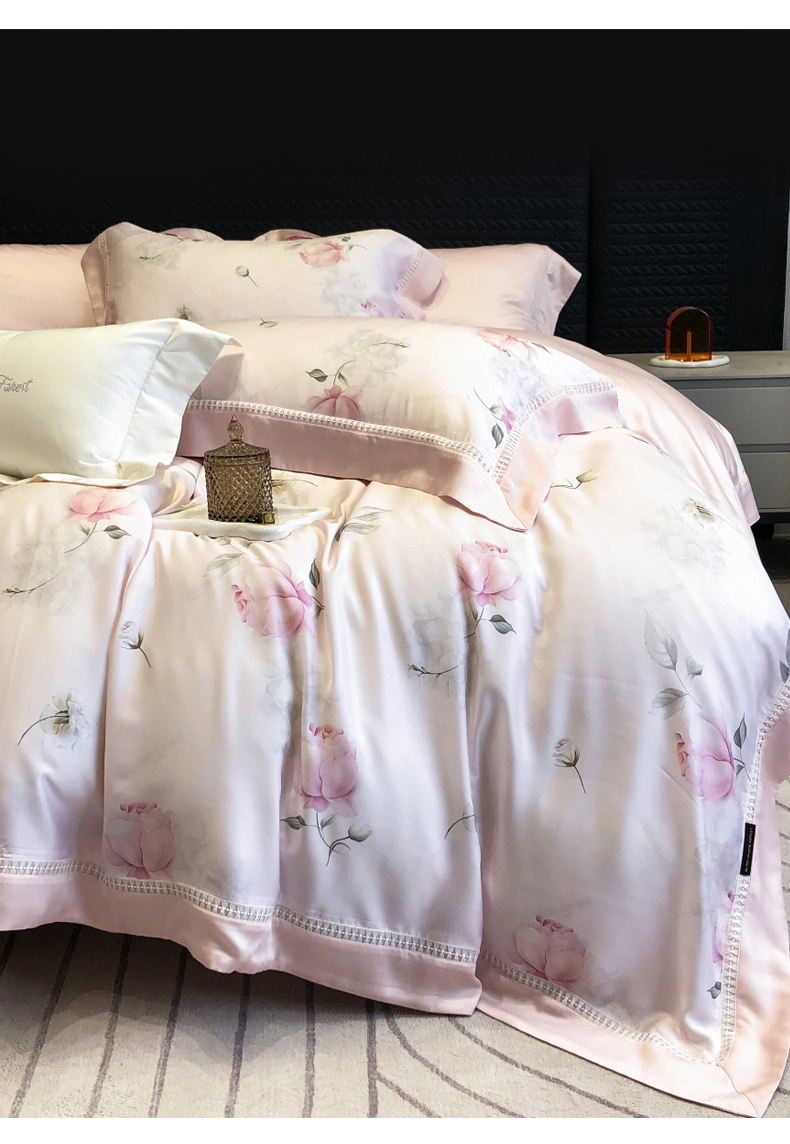 黑白森林 2026新款轻奢天丝印花四件套 邂逅-粉
