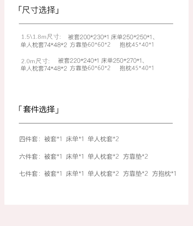 [{"sp_id":11,"sp_name":"\u989c\u8272","sp_format":2,"sp_list":[{"sp_value_id":649,"sp_value_name":"\u7c73\u5170\u4e4b\u7ea6","sp_value_image":{"id":999,"path":"https:\/\/img3.91jf.com\/ghelp\/2026\/20260407\/20260407125852_648360.jpeg"},"sp_value_video":{"id":0,"img":"","path":"","time":0,"download_num":0,"play_num":0},"price":"220.00","storage":2500,"weight":"3.000","is_check_weight":0,"plus_price":"","sp_sort":1}]},{"sp_id":10,"sp_name":"\u5c3a\u5bf8","sp_format":1,"sp_list":[{"sp_value_id":41,"sp_value_name":"1.5m\u5e8a\u5355\u6b3e\u56db\u4ef6\u5957","sp_value_image":{"id":0,"path":""},"sp_value_video":{"id":0,"img":"","path":"","time":0,"download_num":0,"play_num":0},"price":"220.00","storage":500,"weight":"3.000","is_check_weight":0,"plus_price":"","sp_sort":5},{"sp_value_id":42,"sp_value_name":"1.8m\u5e8a\u5355\u6b3e\u56db\u4ef6\u5957","sp_value_image":{"id":0,"path":""},"sp_value_video":{"id":0,"img":"","path":"","time":0,"download_num":0,"play_num":0},"price":"220.00","storage":500,"weight":"3.000","is_check_weight":0,"plus_price":"","sp_sort":6},{"sp_value_id":43,"sp_value_name":"2.0m\u5e8a\u5355\u6b3e\u56db\u4ef6\u5957","sp_value_image":{"id":0,"path":""},"sp_value_video":{"id":0,"img":"","path":"","time":0,"download_num":0,"play_num":0},"price":"235.00","storage":500,"weight":"3.000","is_check_weight":0,"plus_price":"","sp_sort":7},{"sp_value_id":44,"sp_value_name":"\u65b9\u57ab\u5957\/\u5bf9","sp_value_image":{"id":0,"path":""},"sp_value_video":{"id":0,"img":"","path":"","time":0,"download_num":0,"play_num":0},"price":"50.00","storage":500,"weight":"0.500","is_check_weight":0,"plus_price":"","sp_sort":8},{"sp_value_id":45,"sp_value_name":"\u5c0f\u62b1\u6795\/\u53ea","sp_value_image":{"id":0,"path":""},"sp_value_video":{"id":0,"img":"","path":"","time":0,"download_num":0,"play_num":0},"price":"35.00","storage":500,"weight":"0.500","is_check_weight":0,"plus_price":"","sp_sort":9}]}]