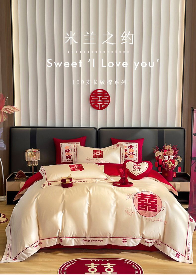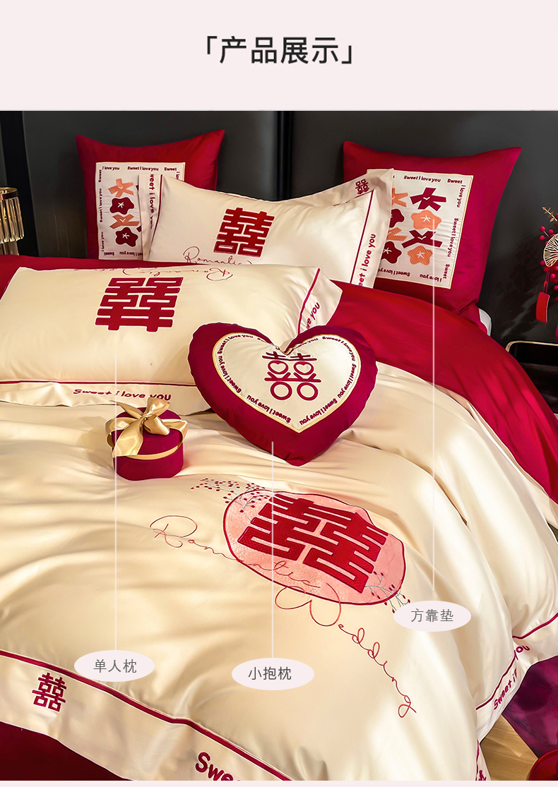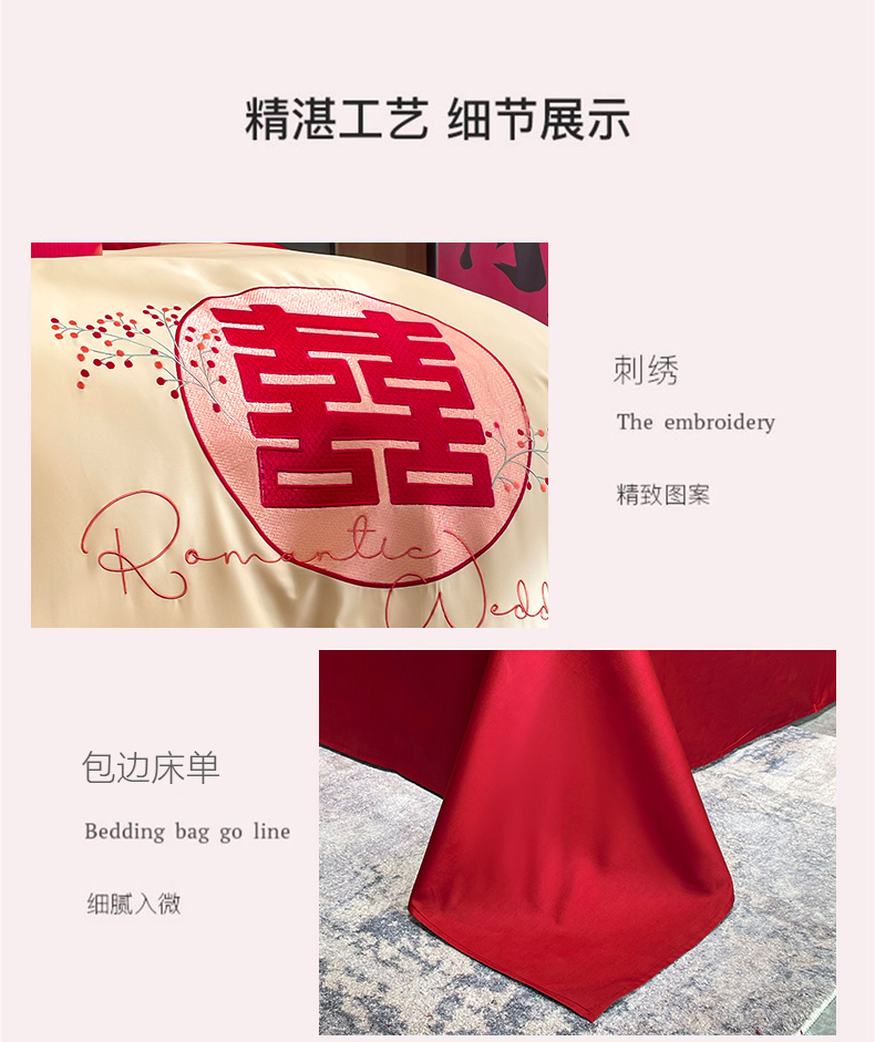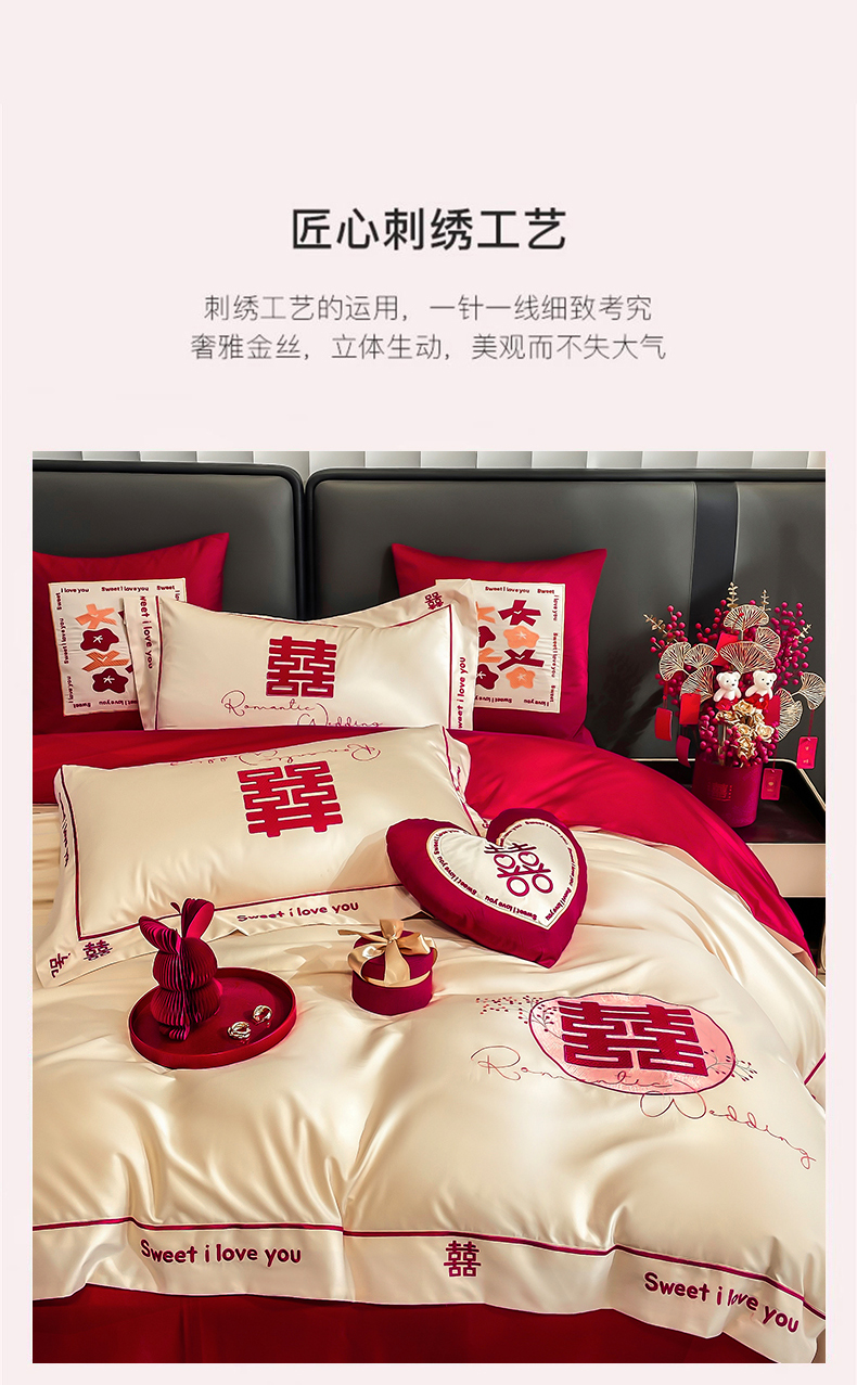 (总)甜咪咪婚庆 2025新款50支长绒棉全棉婚庆床单床盖四件套多件套刺绣工艺,洛可可,爱恋小熊,爱意久久,多子多福,花田喜事,节节高升,克拉恋人,浪漫情怀,怦然心动红,怦然心动玉,甜心玫瑰,温莎公主,伊甸园,醉红妆