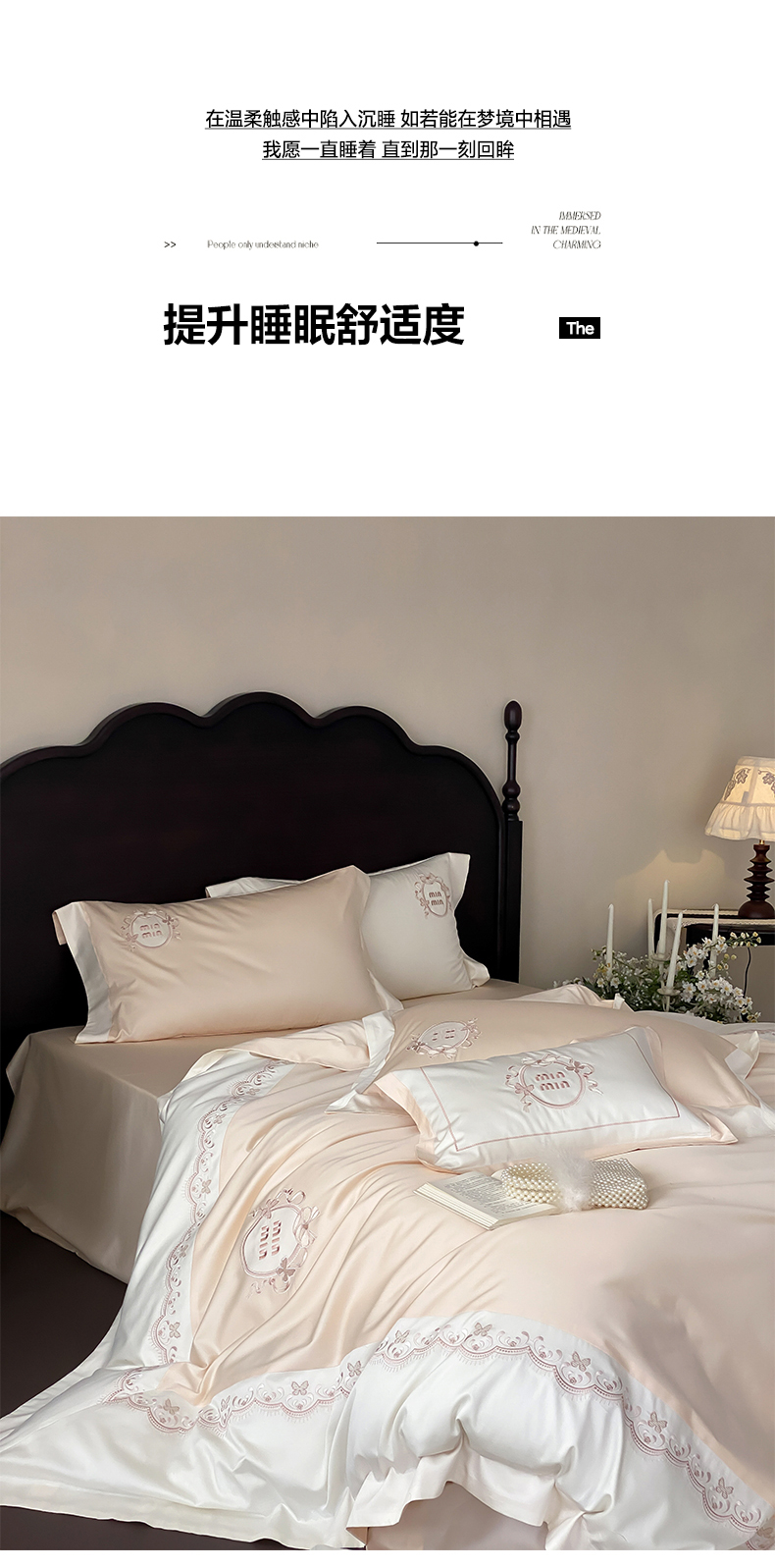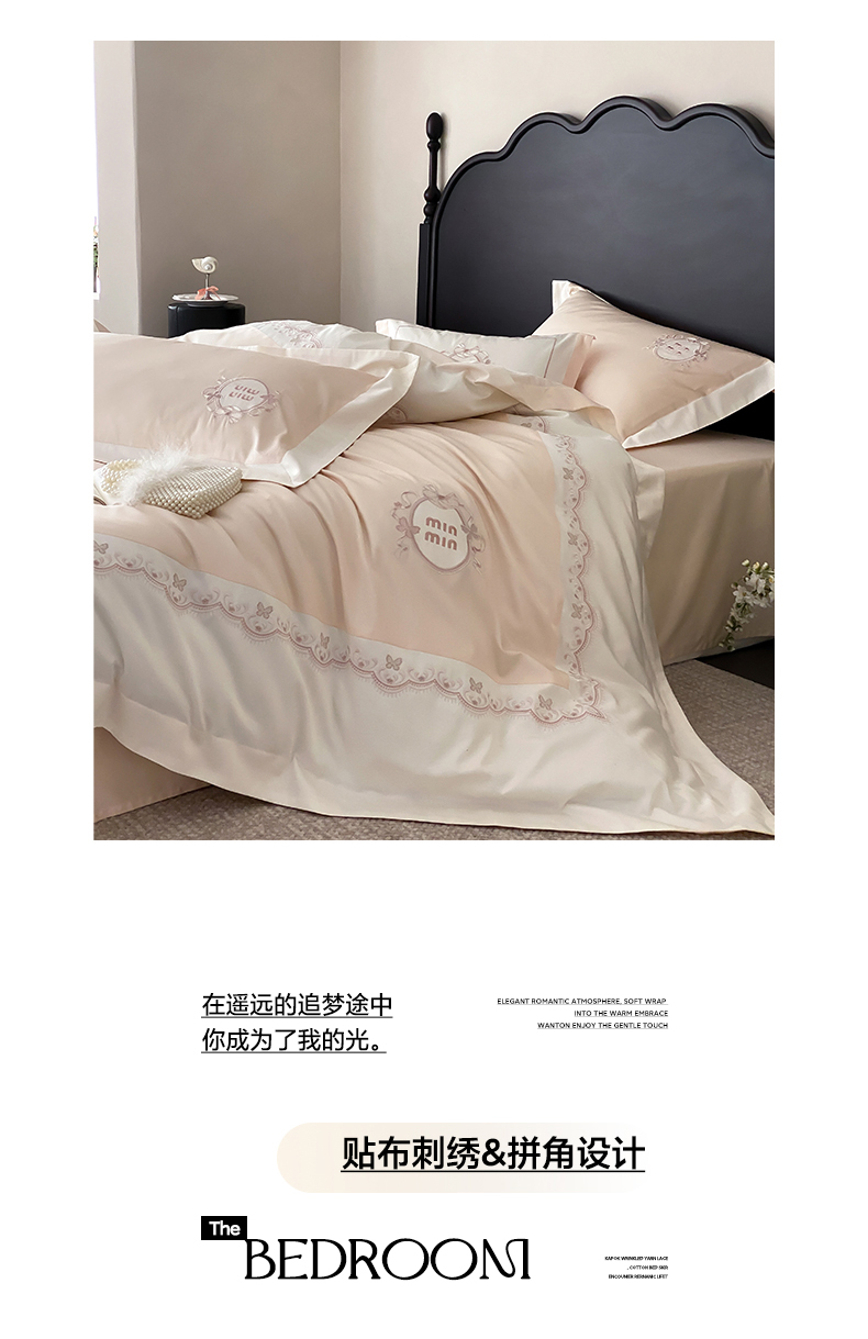 商品名称:(总)树下 2026新款a类100支50s双股刺绣高支高密贡缎长绒棉四件套全棉四件套-蝶吟