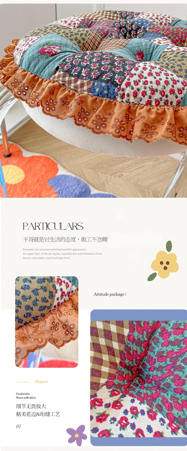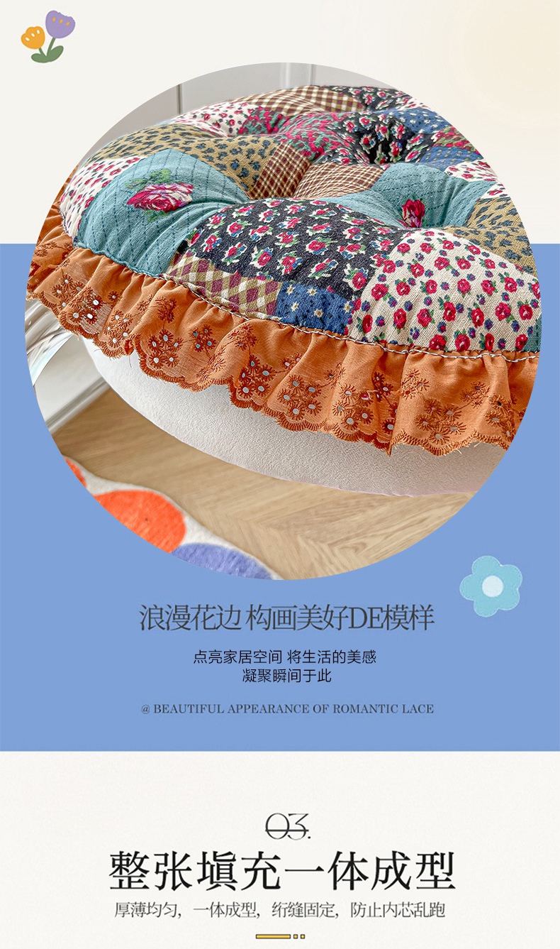 当前位置: 91家纺网 > 商品网购 > 居家布艺 > 坐垫/椅垫/沙发垫 > 椅垫 > 座享家 2026新款拼色仿棉麻花边团蒲坐垫 玫瑰花绿