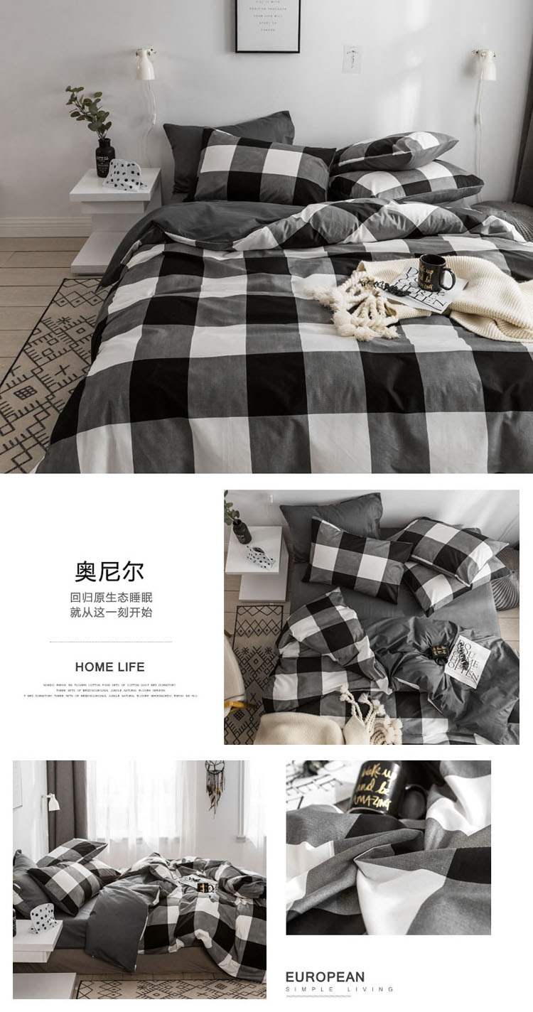 (总)梦家居 2022新款棋盘格系列全棉四件套,棋盘格-黑色,棋盘格-黄蓝,棋盘格-焦糖色,棋盘格-蓝色,棋盘格-浅黄色,棋盘格-浅咖色,棋盘格-浅绿