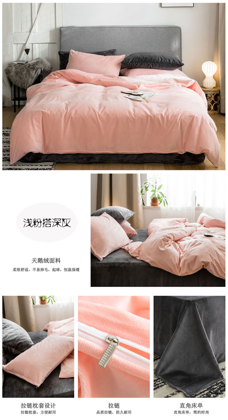 (总)梦家居 2019韩国简约素色天鹅绒单被套