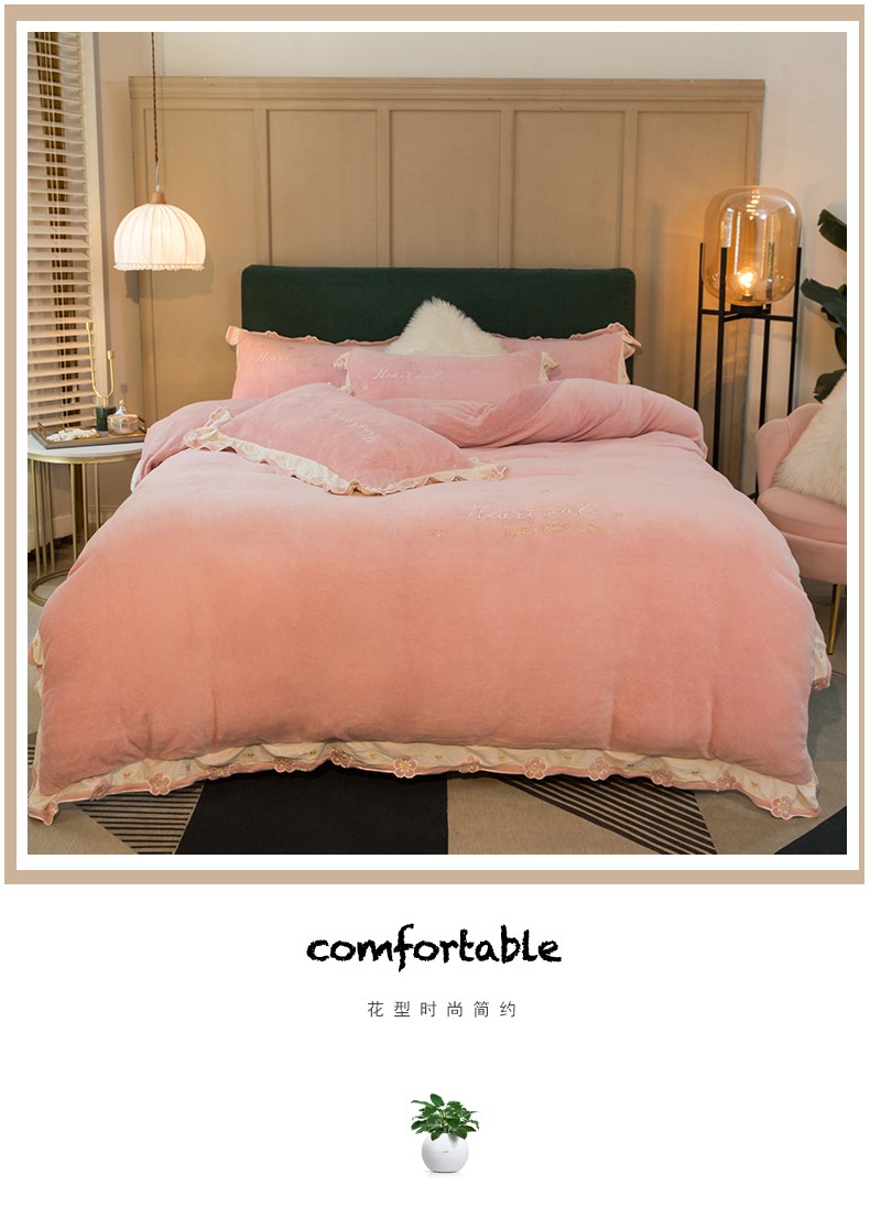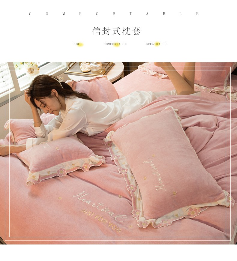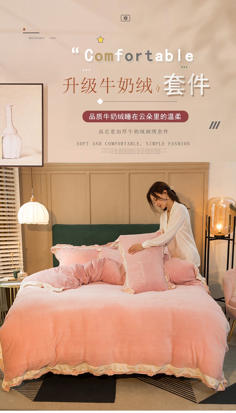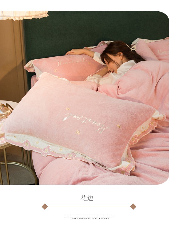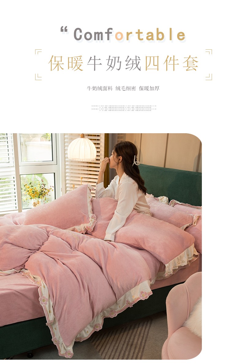 商品名称:安妮家居2022新款牛奶绒刺绣四件套-朵拉 粉色