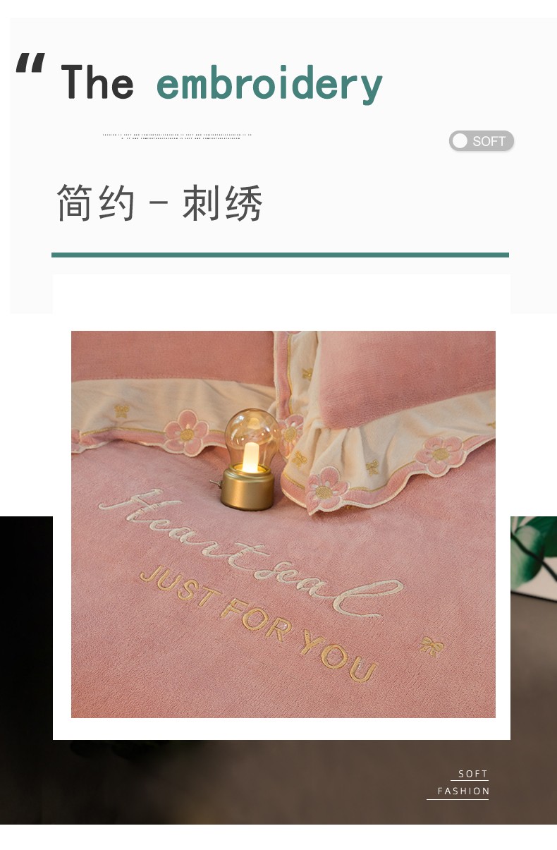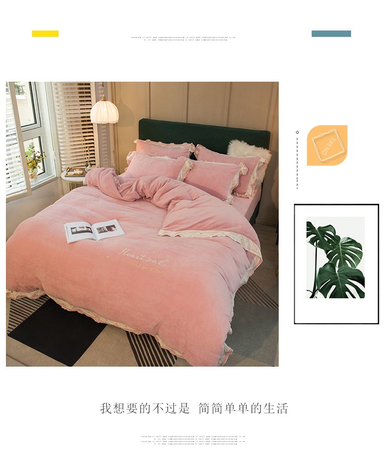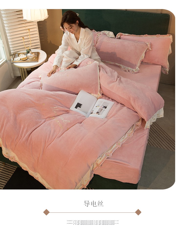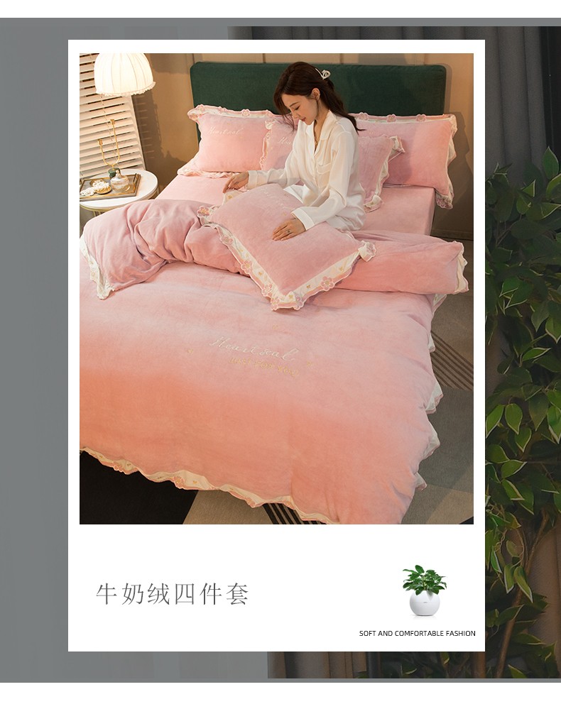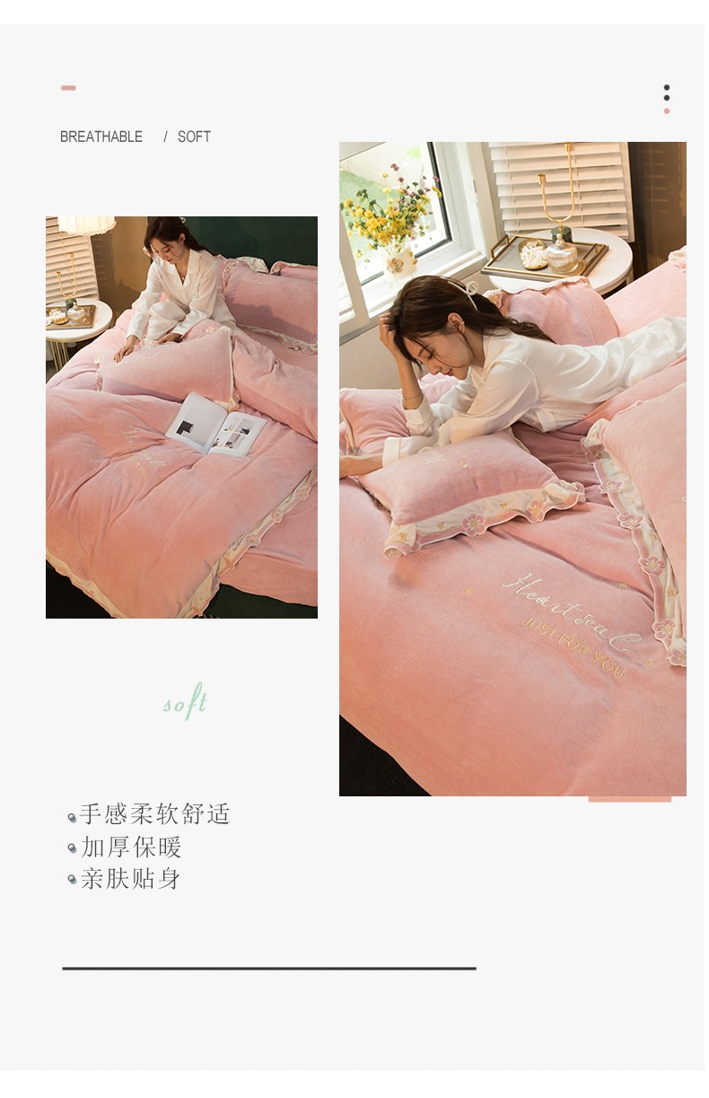 商品名称:安妮家居2022新款牛奶绒刺绣四件套-朵拉 粉色