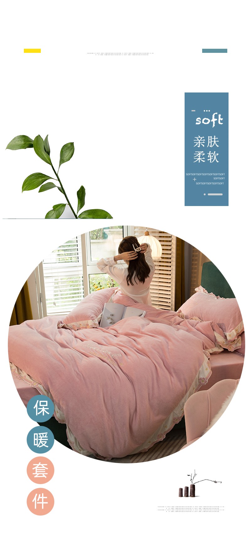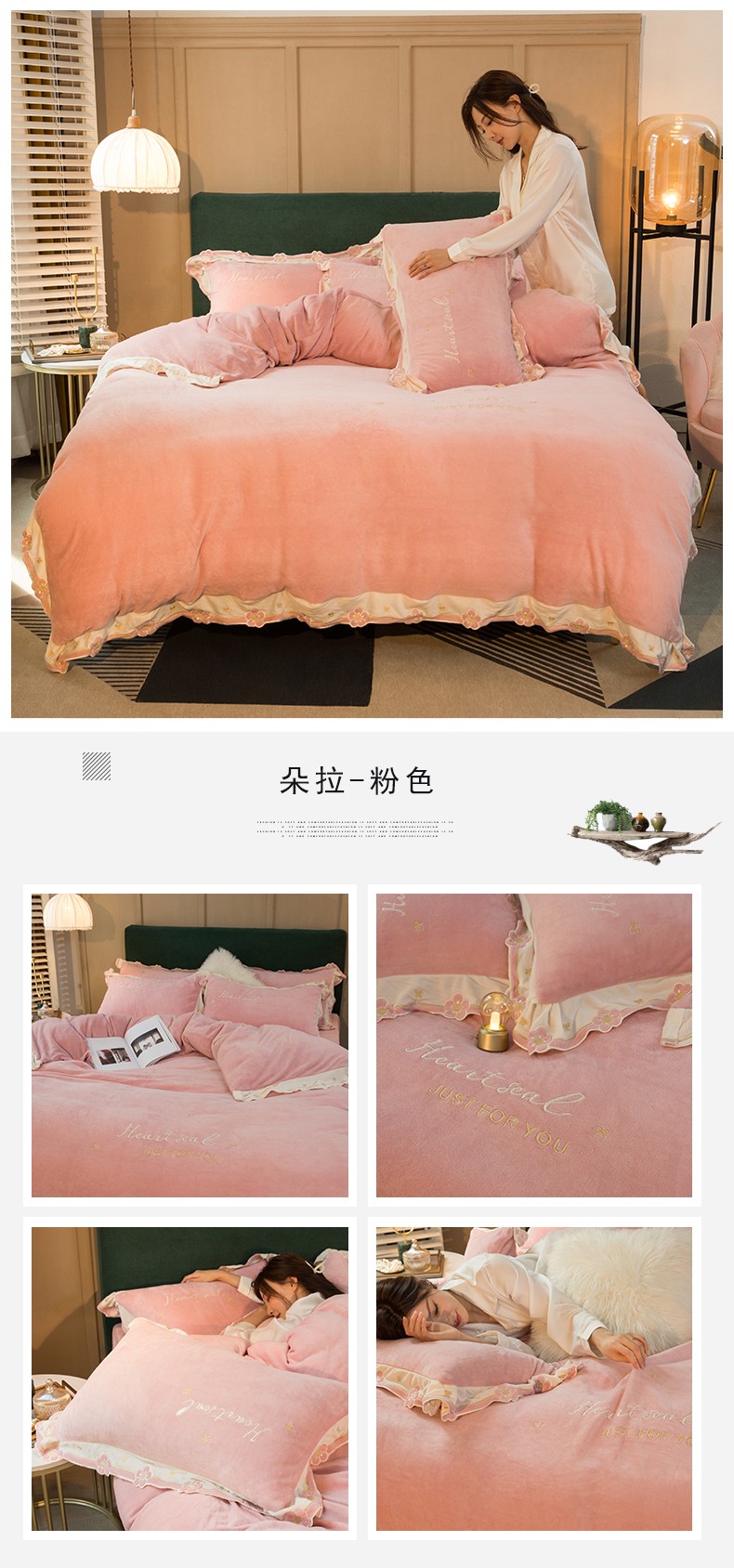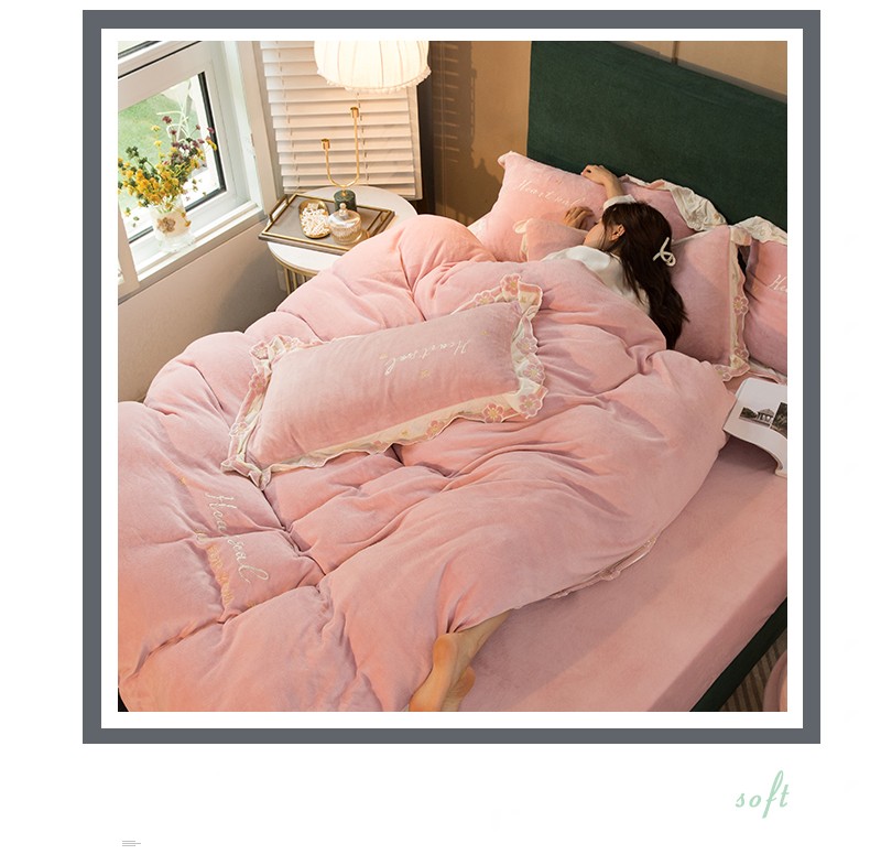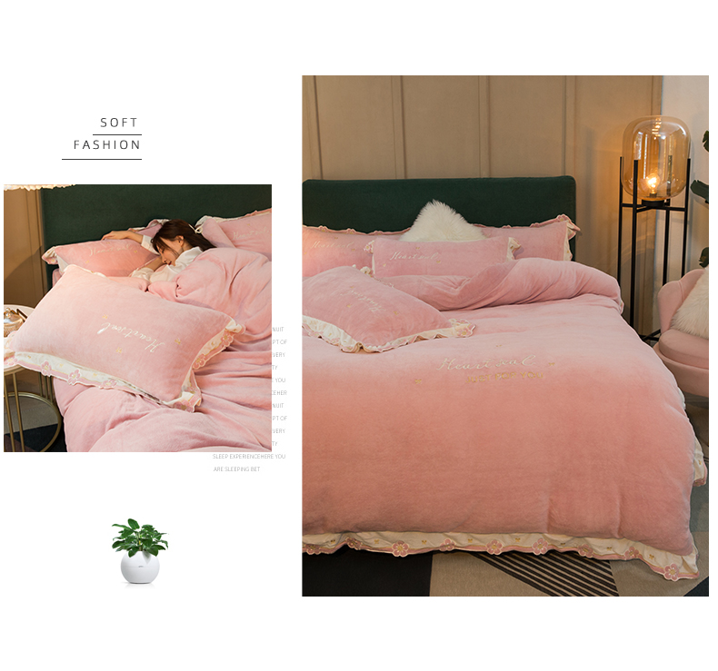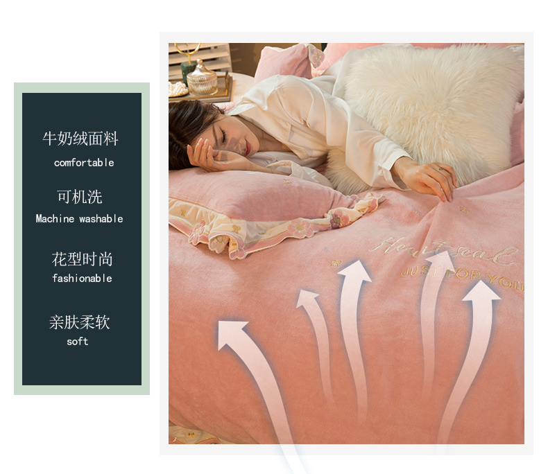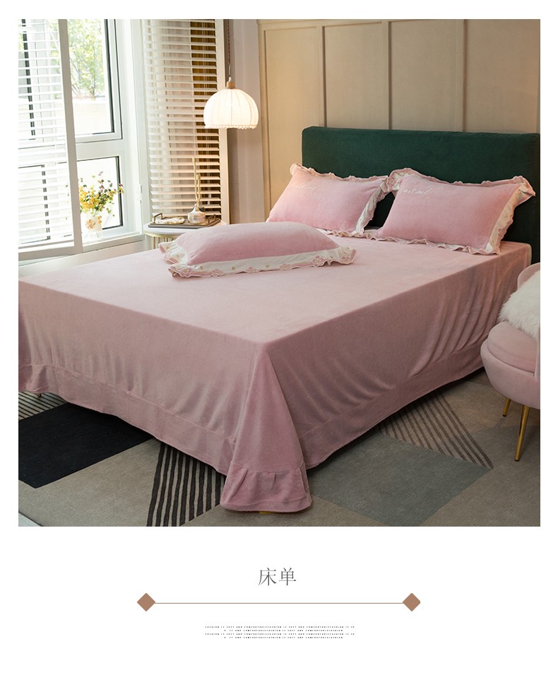 商品名称:安妮家居2022新款牛奶绒刺绣四件套-朵拉 粉色