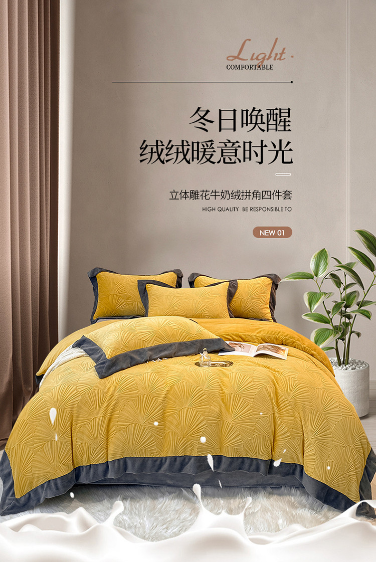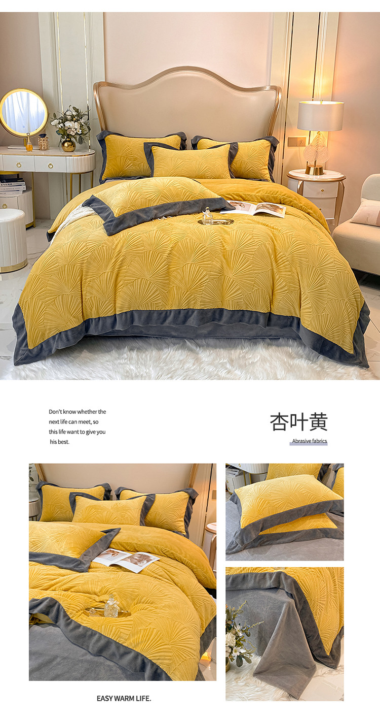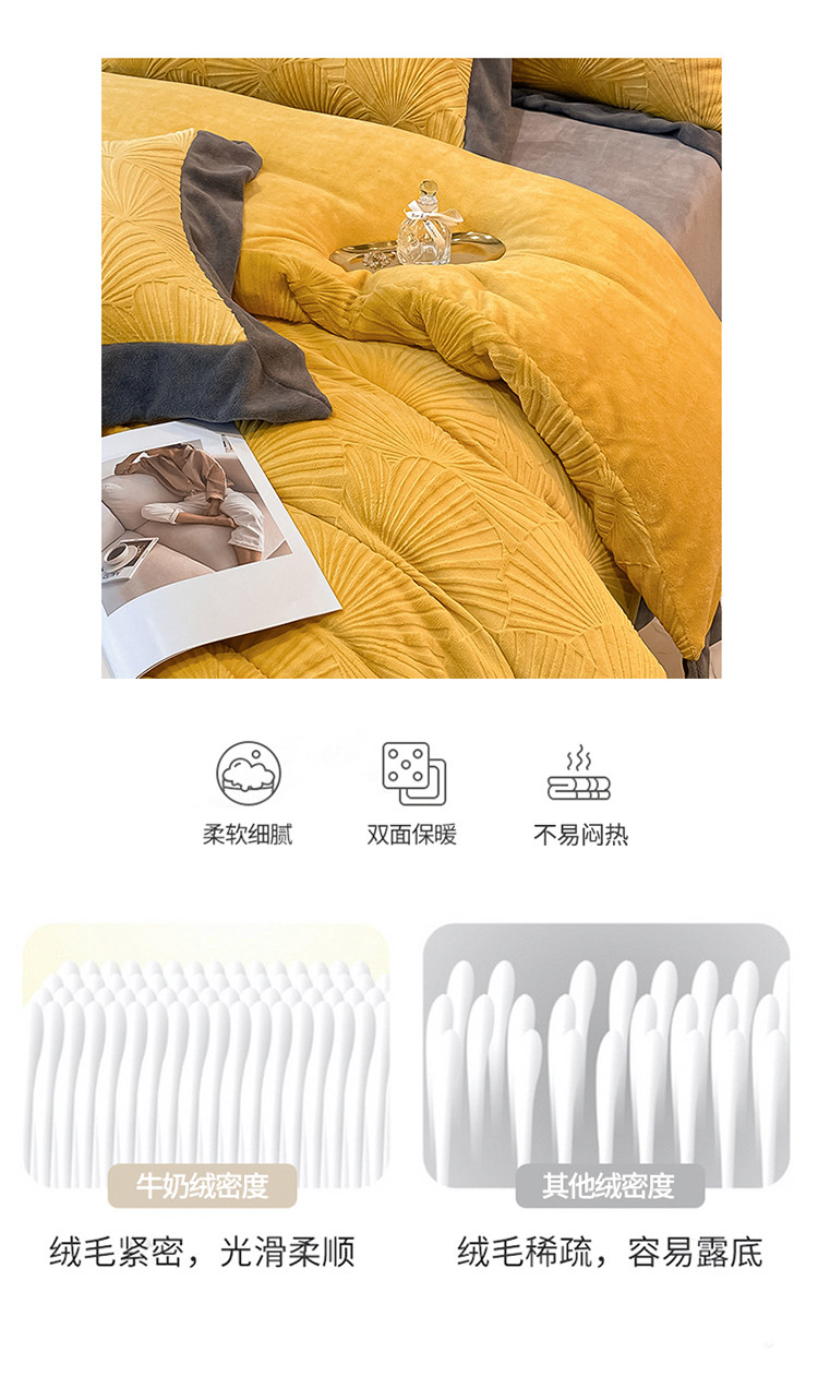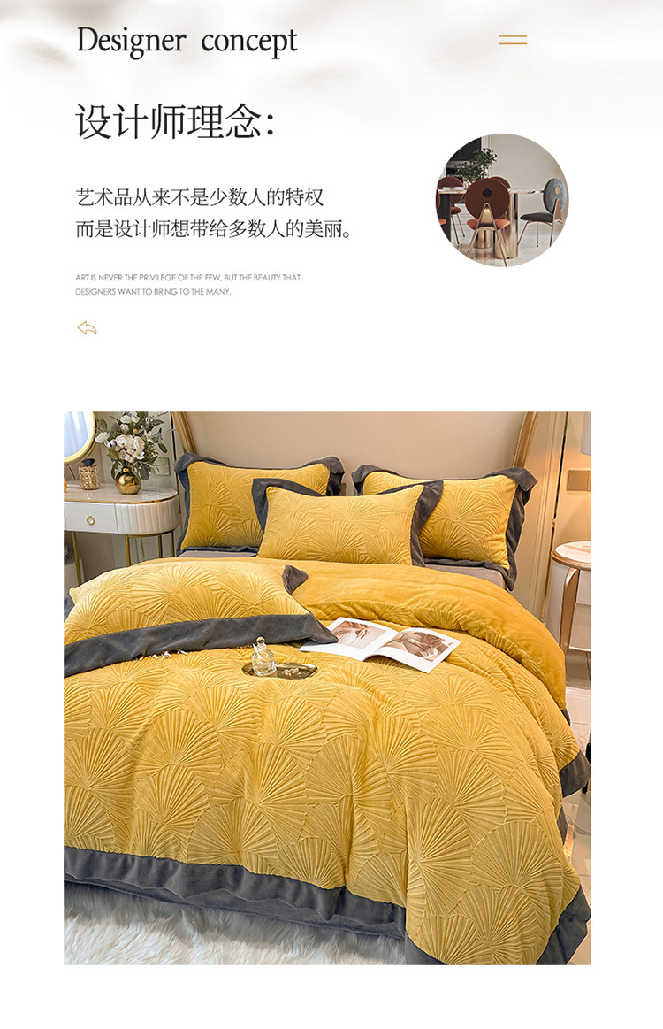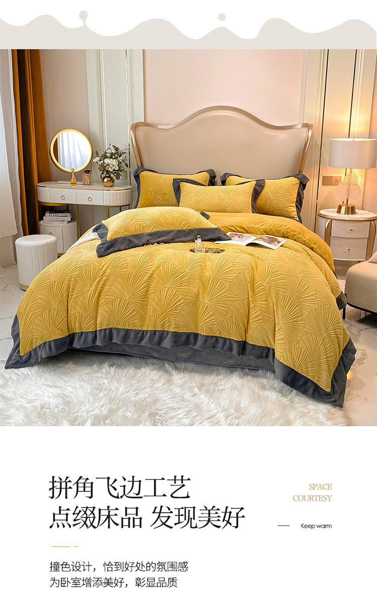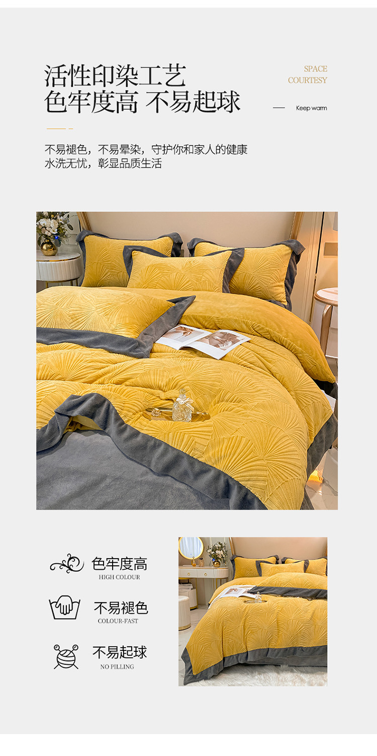商品名称:吾秀 2021秋冬新款银杏雕花绒四件套 杏叶黄