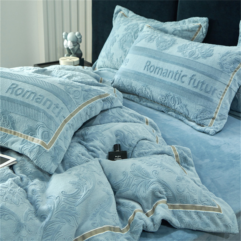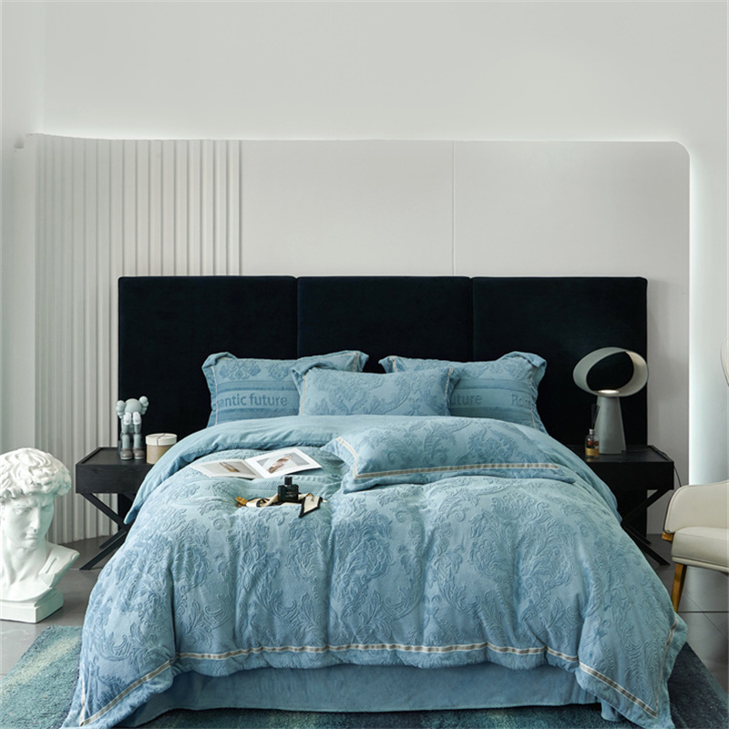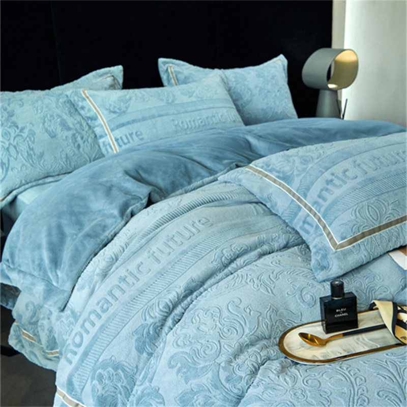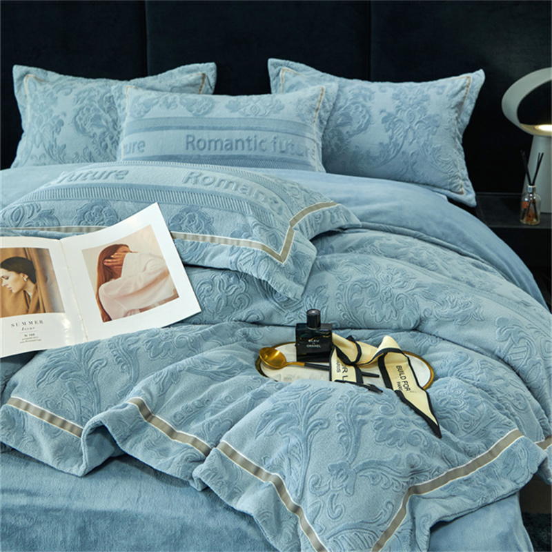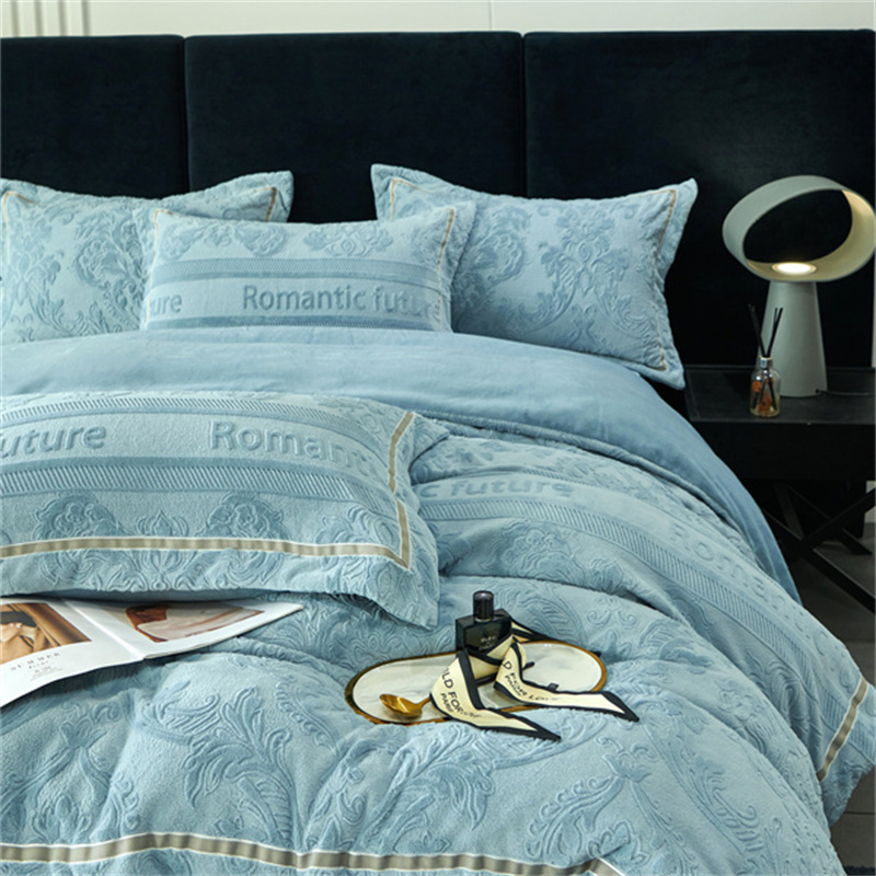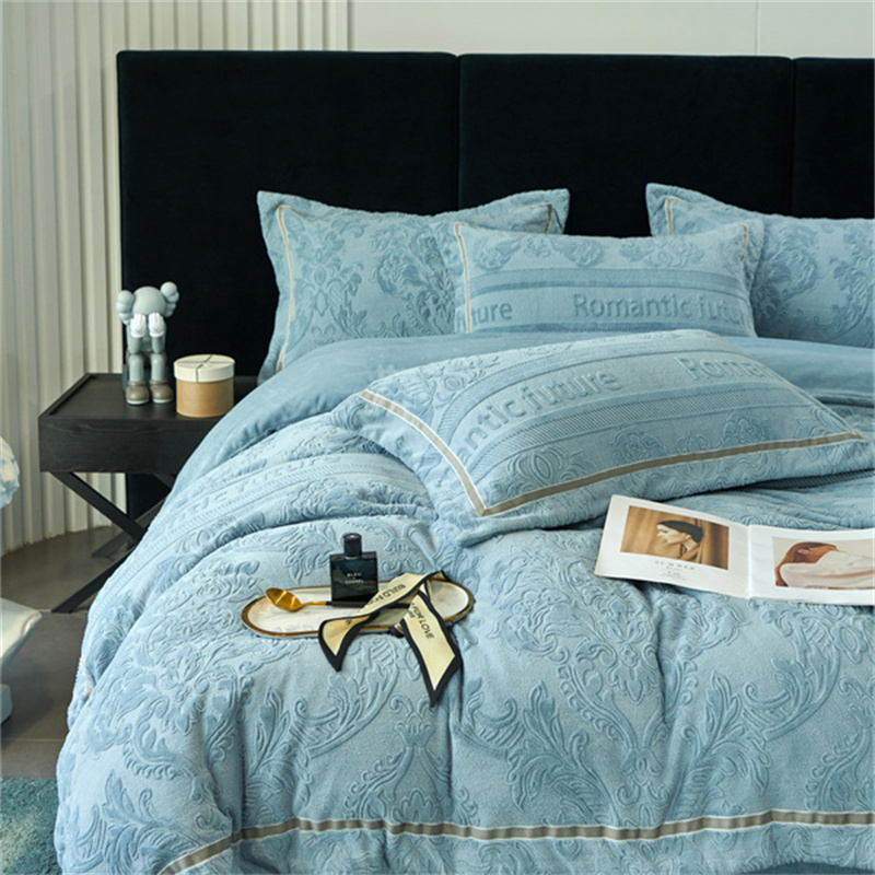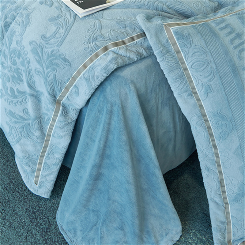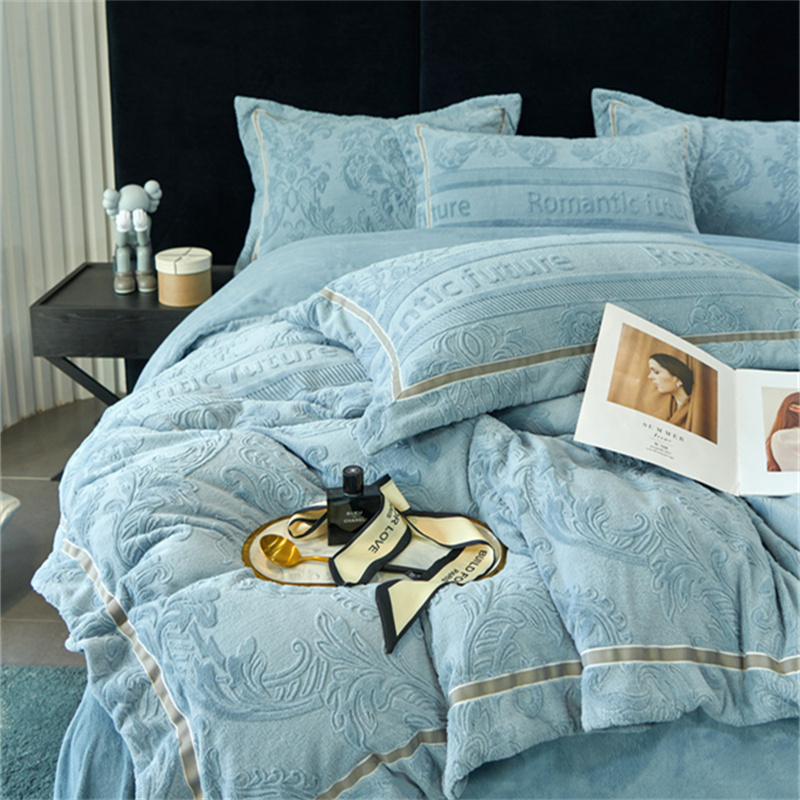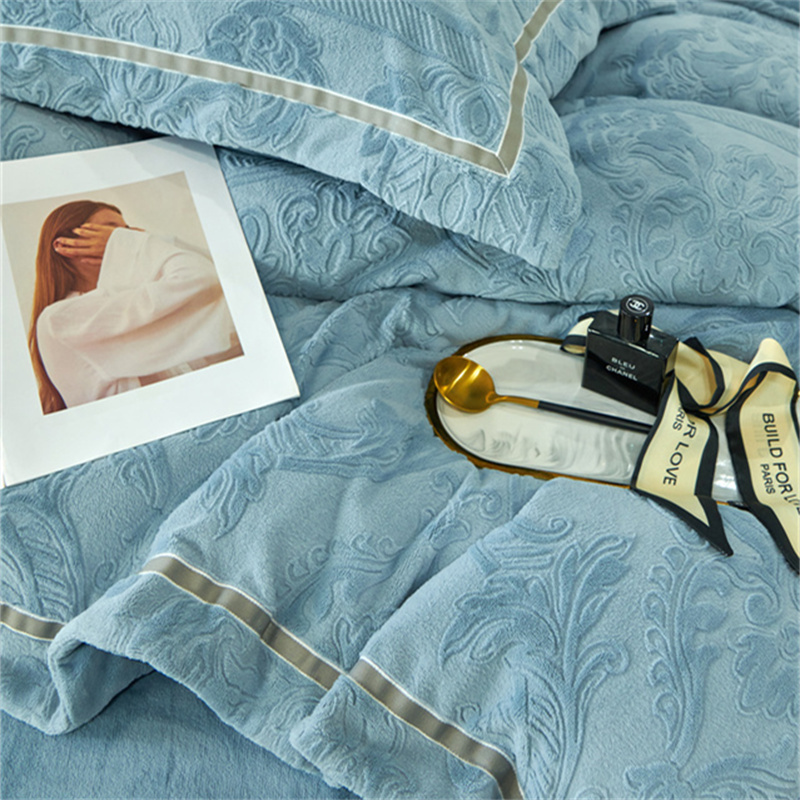 商品名称:榻尚家居 2023新款260克全消光高端浮雕绒四件套 瑞丽-天蓝