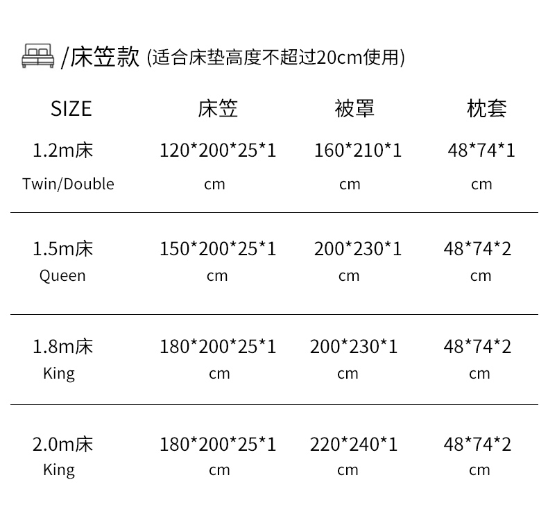2.0m床笠款四件套 | ¥155.00 |