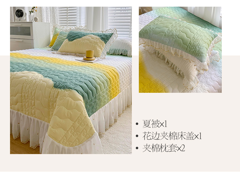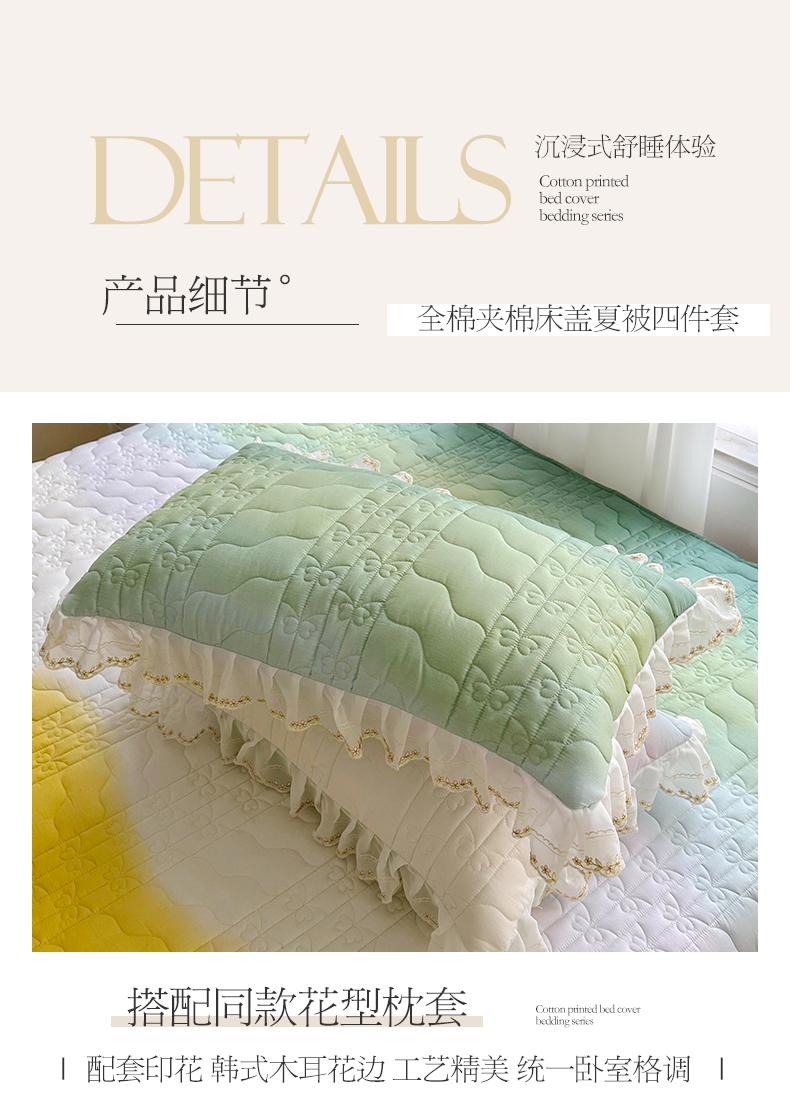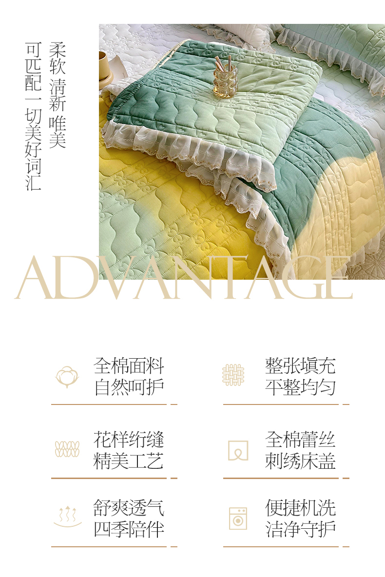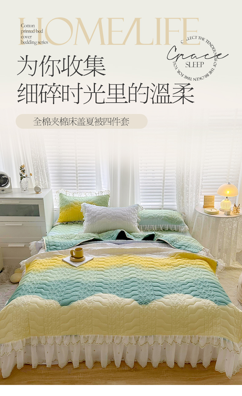 当前位置: 91家纺网 > 商品网购 > 床品套件 > 四件套 > 夏被四件套 > 宜凡家纺 全棉床盖夏被四件套 黄绿