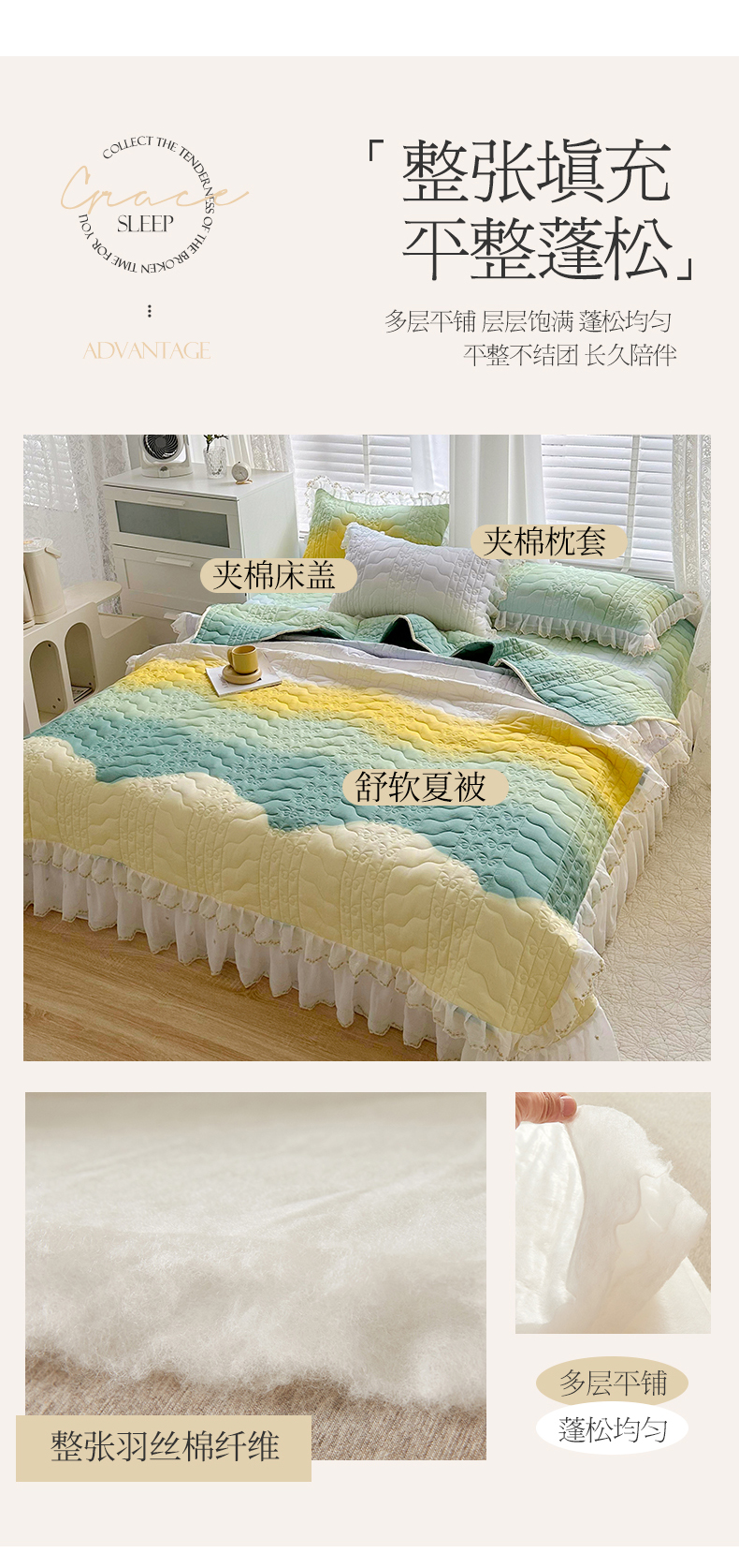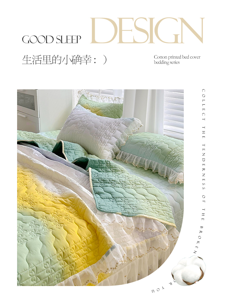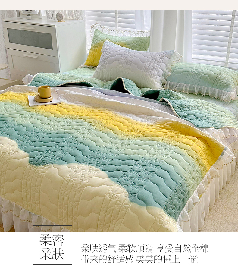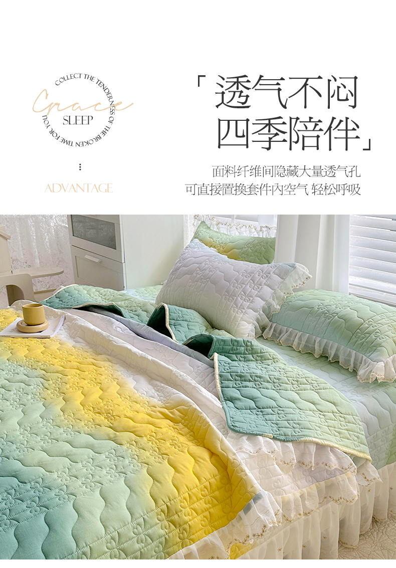 当前位置: 91家纺网 > 商品网购 > 床品套件 > 四件套 > 夏被四件套 > 宜凡家纺 全棉床盖夏被四件套 黄绿