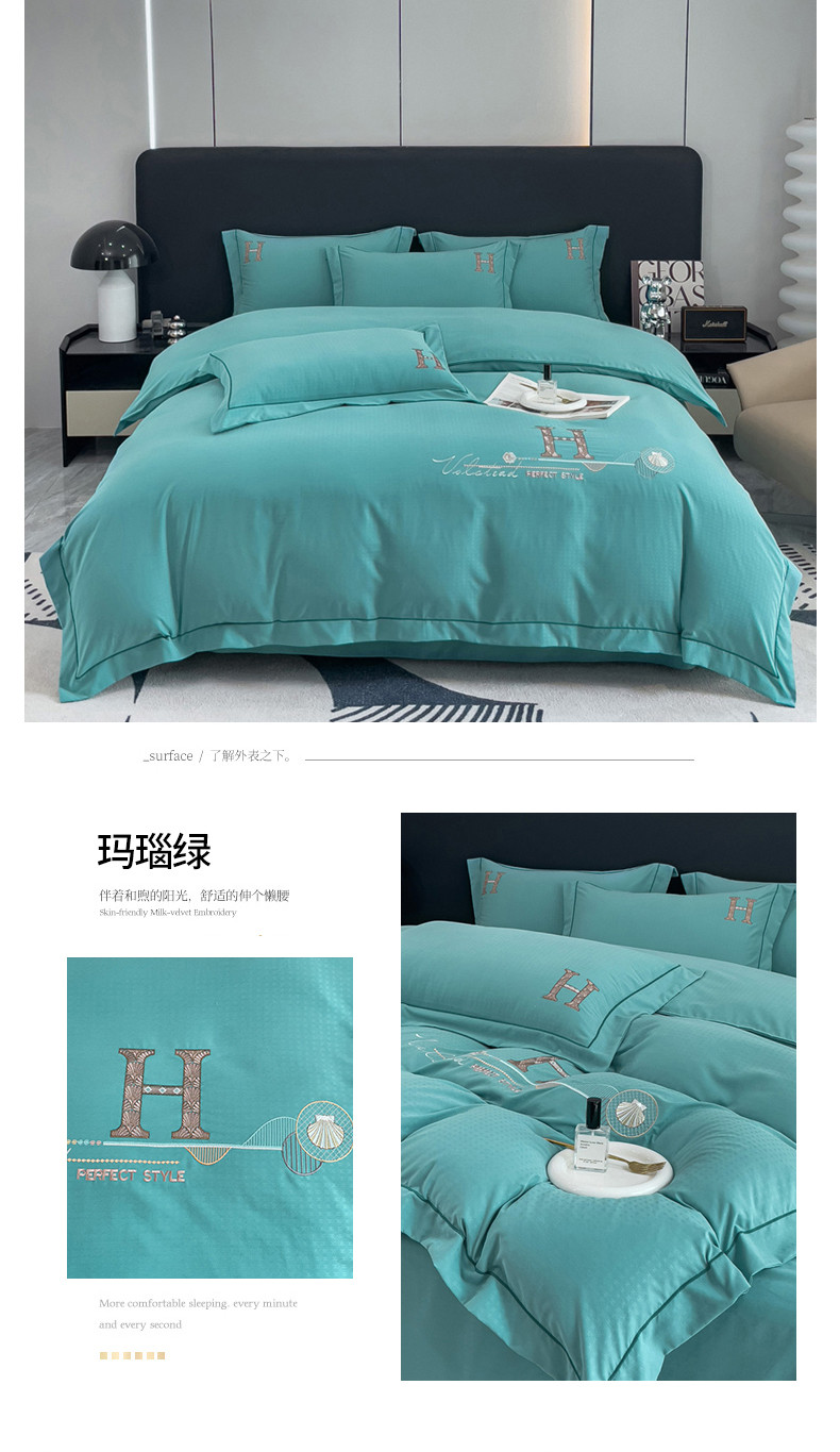 商品名称:靓生活 2023新款欧曼系列锦棉提花刺绣四件套 欧曼-玛瑙绿