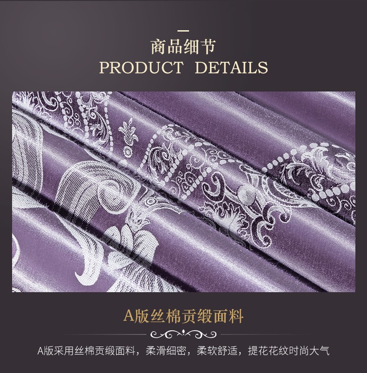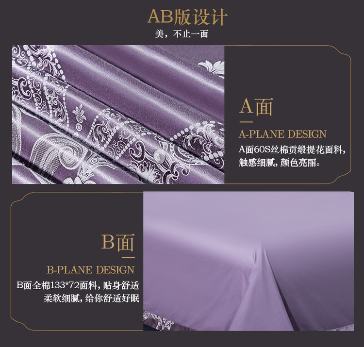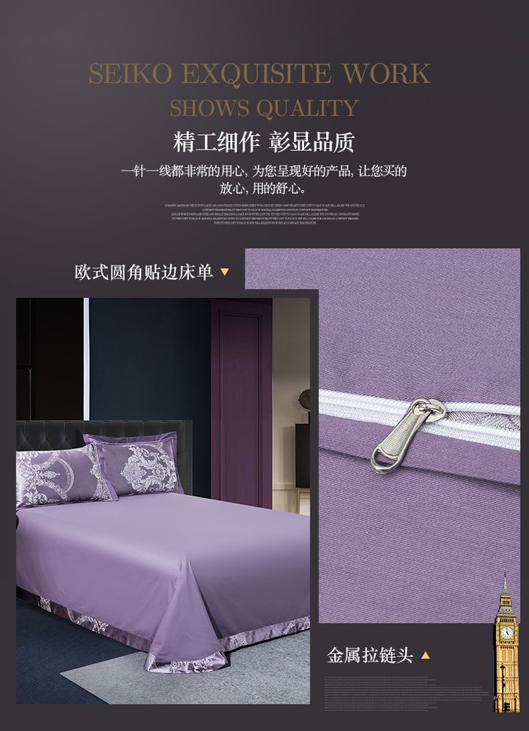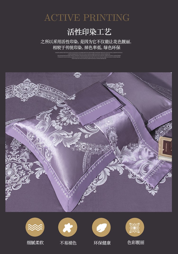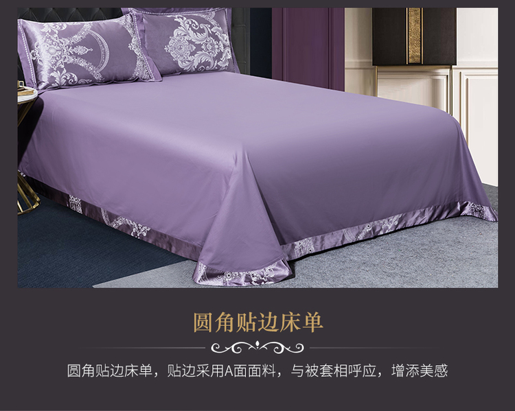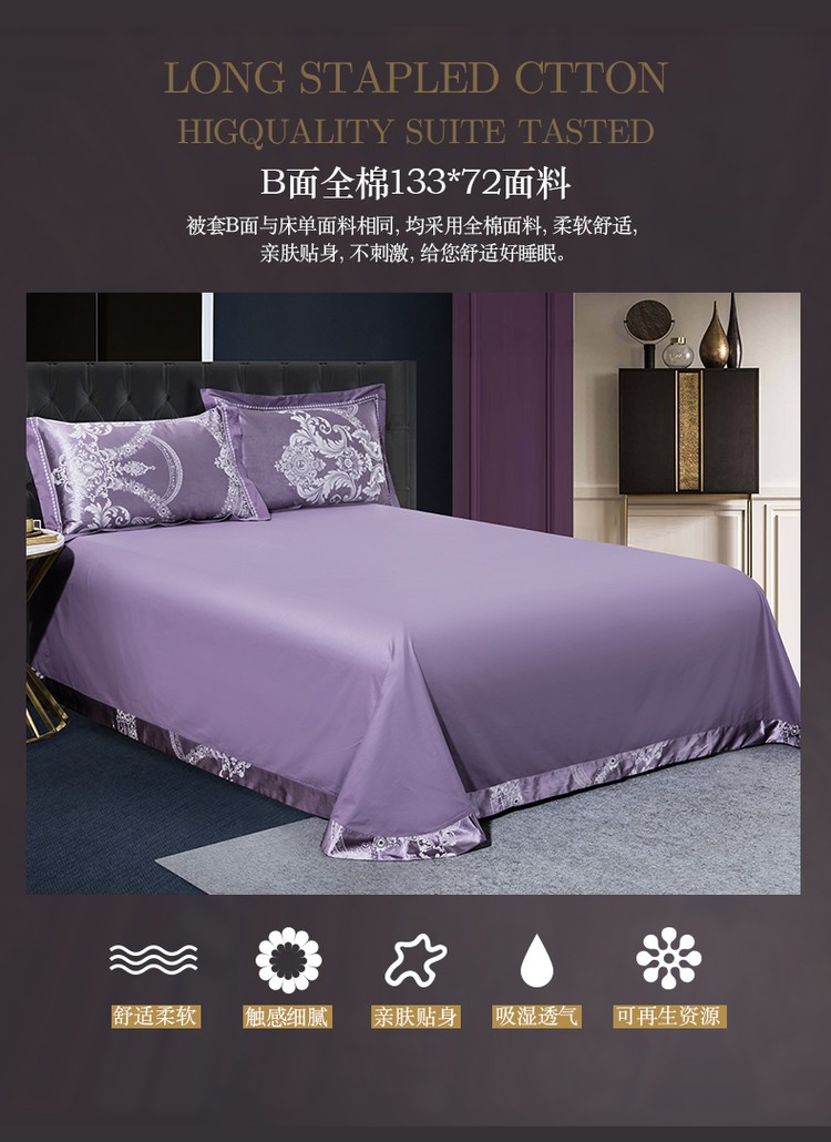 柔觉家纺 天丝刺绣贡缎提花全棉四件套,卡曼时尚-粉紫