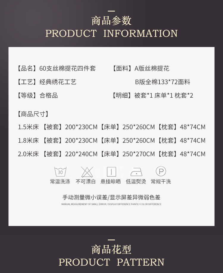商品名称:天丝刺绣贡缎提花全棉四件套