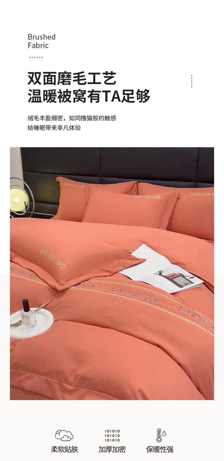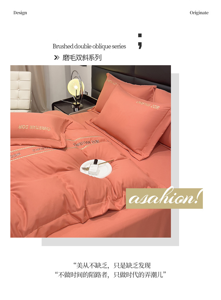 靓生活 2023新款磨毛双斜四件套爱马橙