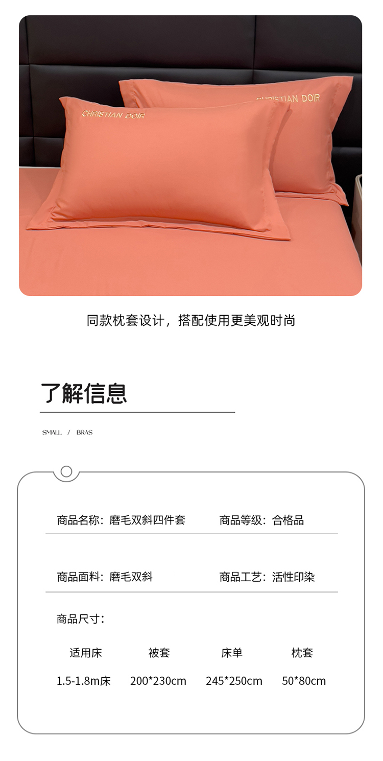 商品名称:靓生活 2023新款磨毛双斜四件套爱马橙