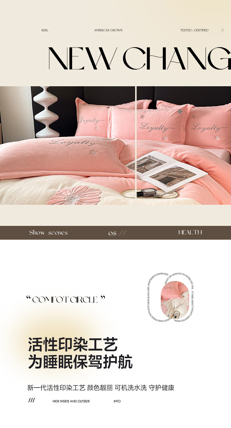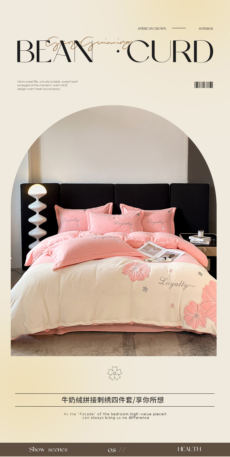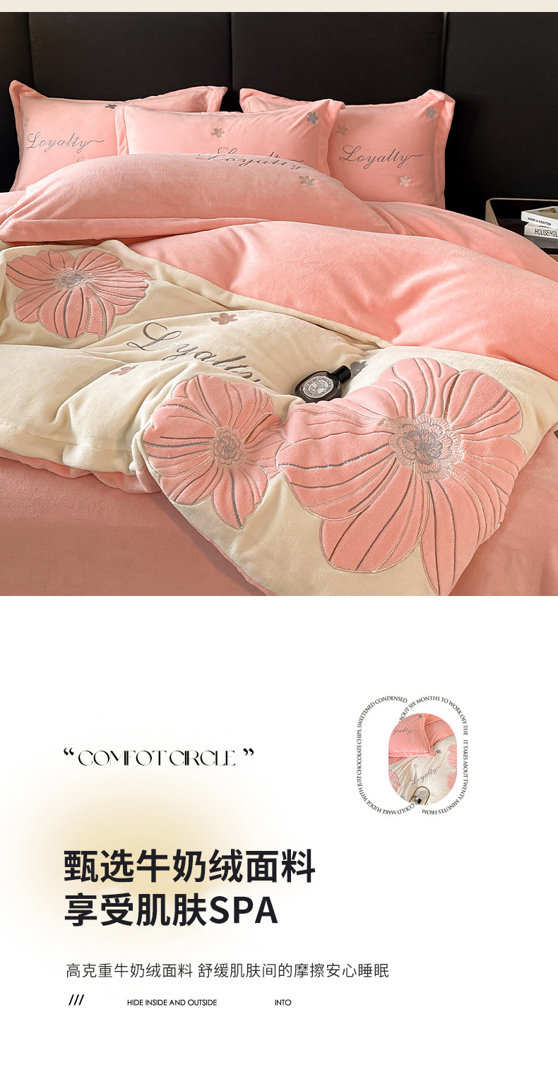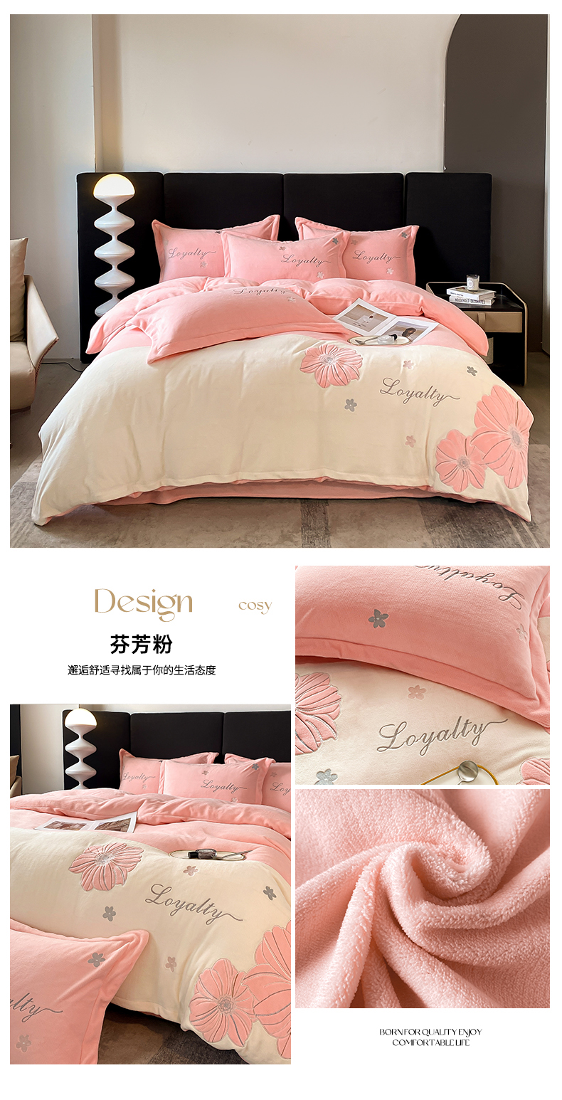 当前位置: 91家纺网 > 商品网购 > 床品套件 > 四件套 > 牛奶绒四件套 > 你好美丽 2025新款200克牛奶绒刺绣花卉3系列四件套 芬芳粉