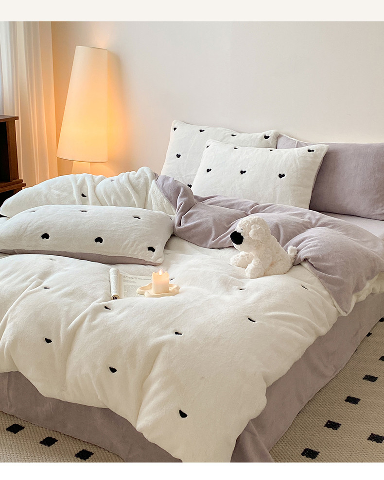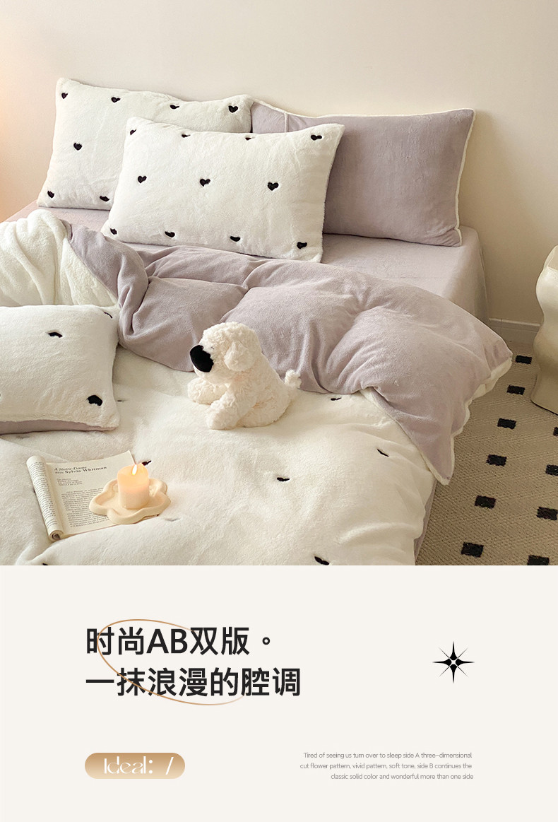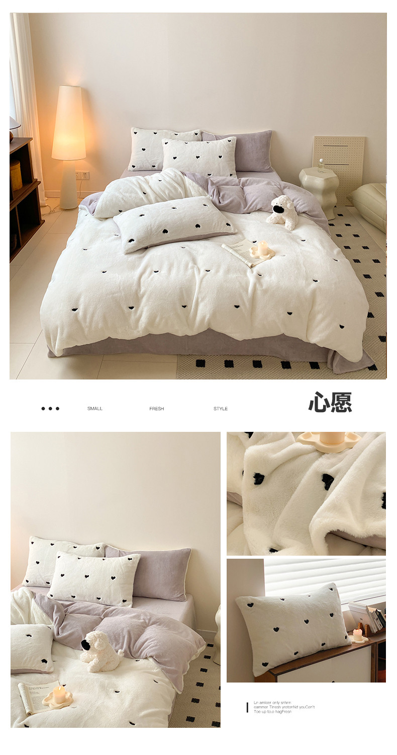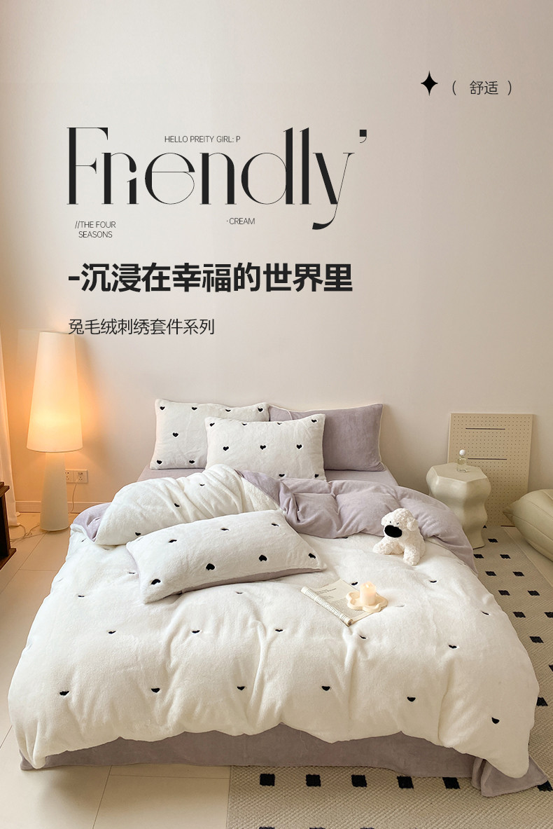 (总)蜜柚 2024新款直播兔毛绒双面保暖牛奶绒小清新绣花四件套