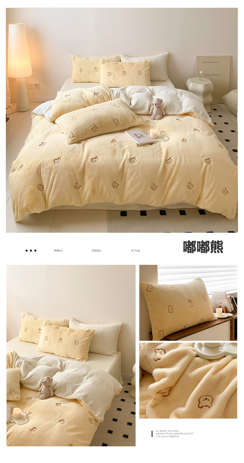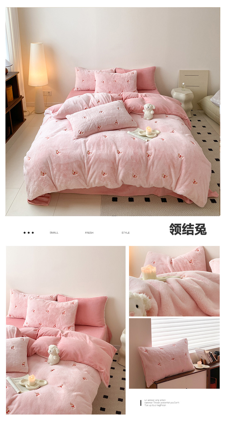 商品名称:(总)蜜柚 2024新款直播兔毛绒双面保暖牛奶绒小清新绣花四件套