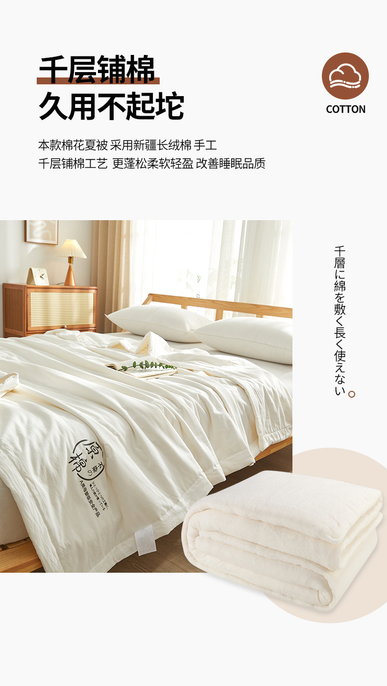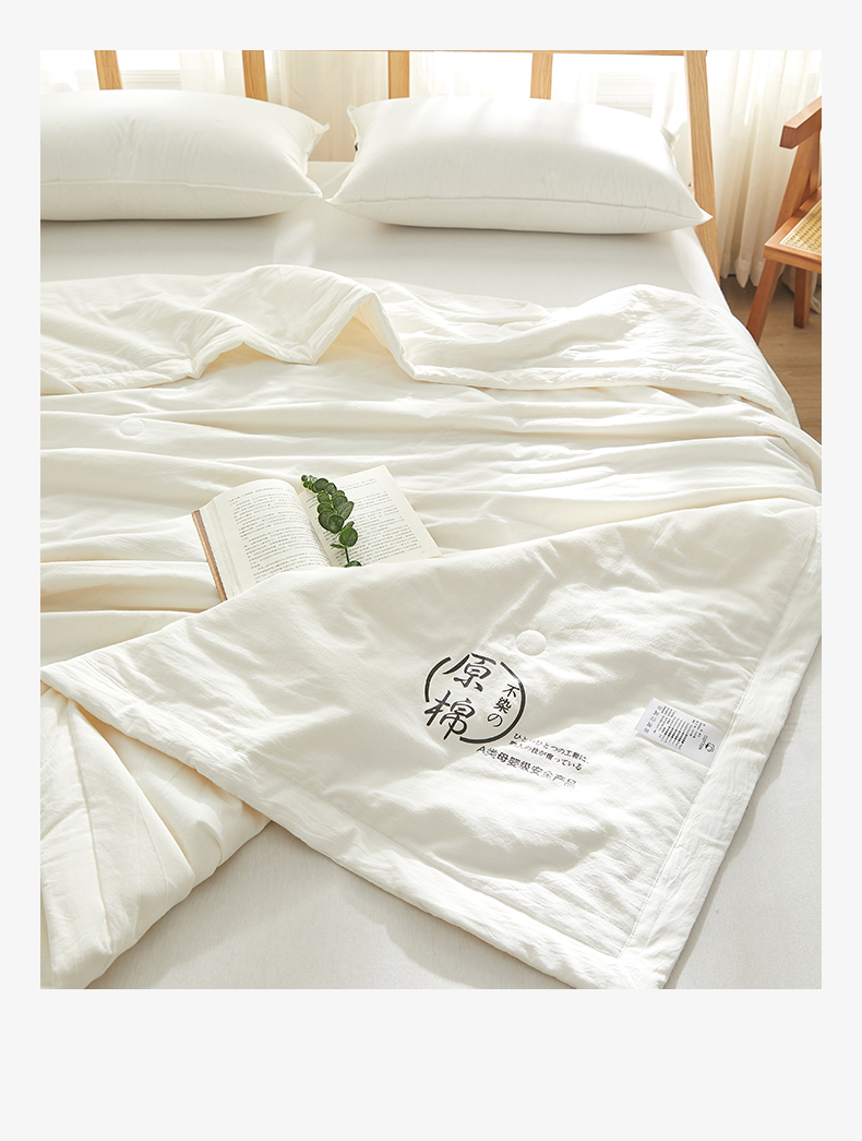 • 91家纺网 家纺一手货源 找家纺 (总)格子铺-2024年新款无印风不染原棉全棉水洗棉烫画夏被,朴棉白,无染白,原棉白