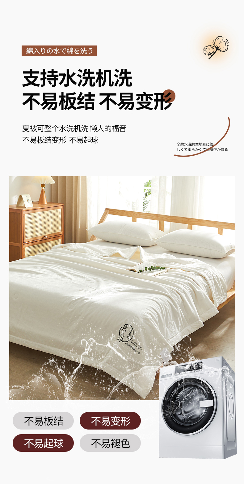(总)格子铺-2024年新款无印风不染原棉全棉水洗棉烫画夏被,朴棉白,无染白,原棉白