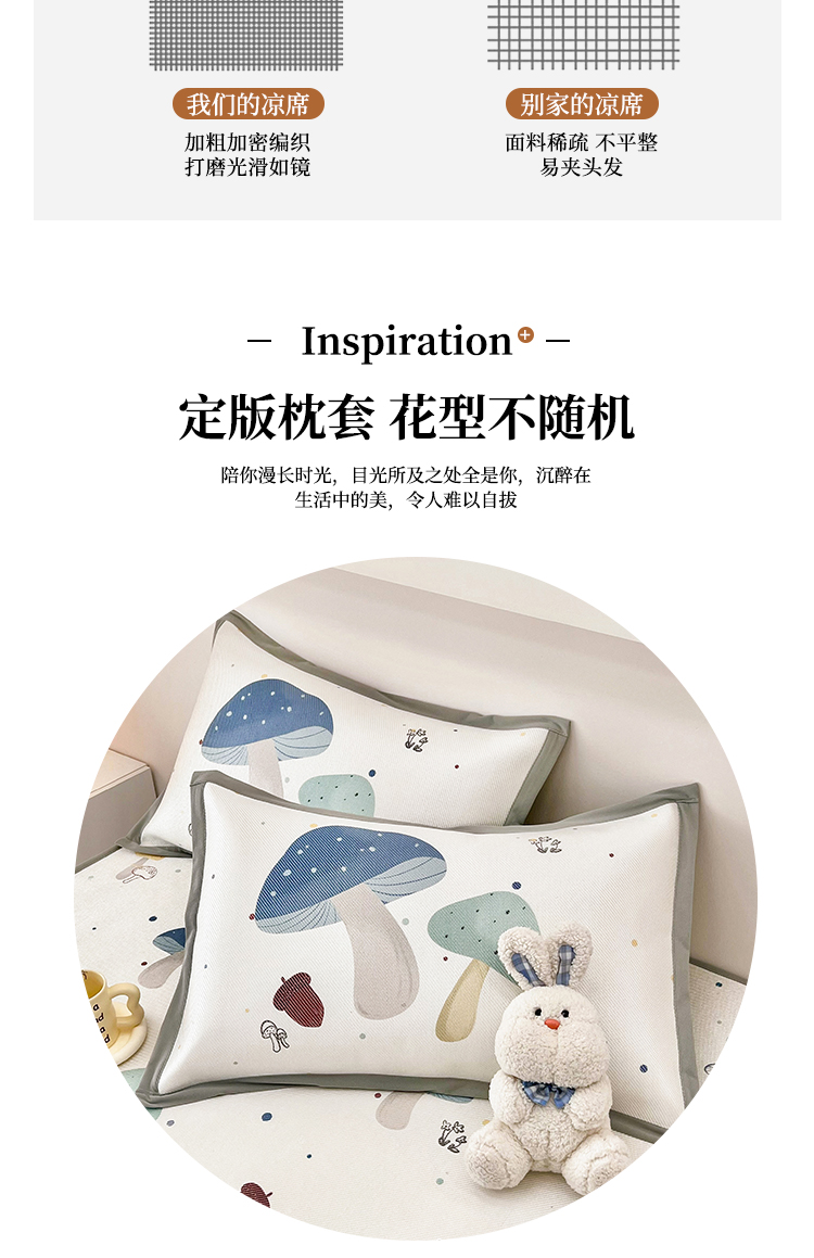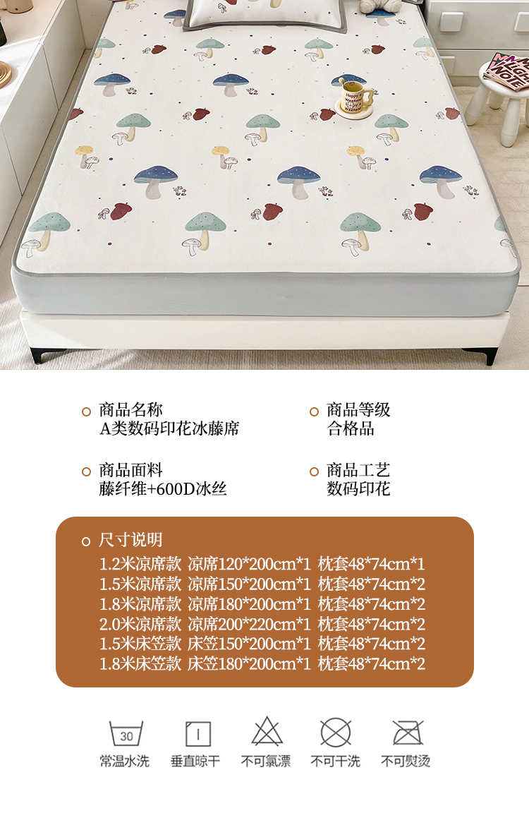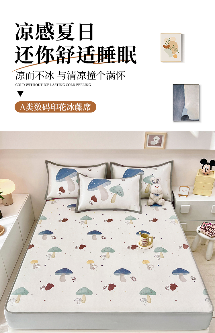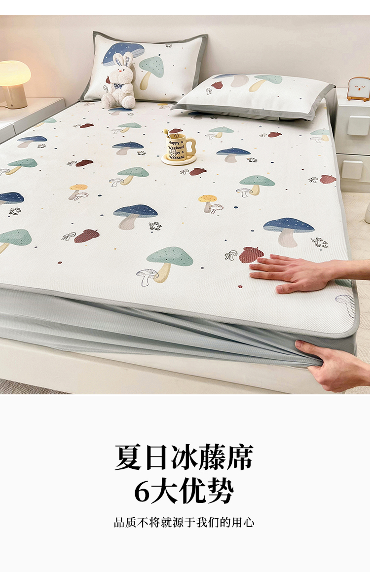 当前位置: 91家纺网 > 商品网购 > 床上用品 > 凉席 > 藤席 > 全季家居 2024新款5A抗菌小清新数码印花冰藤席 蘑菇世界(床席款)