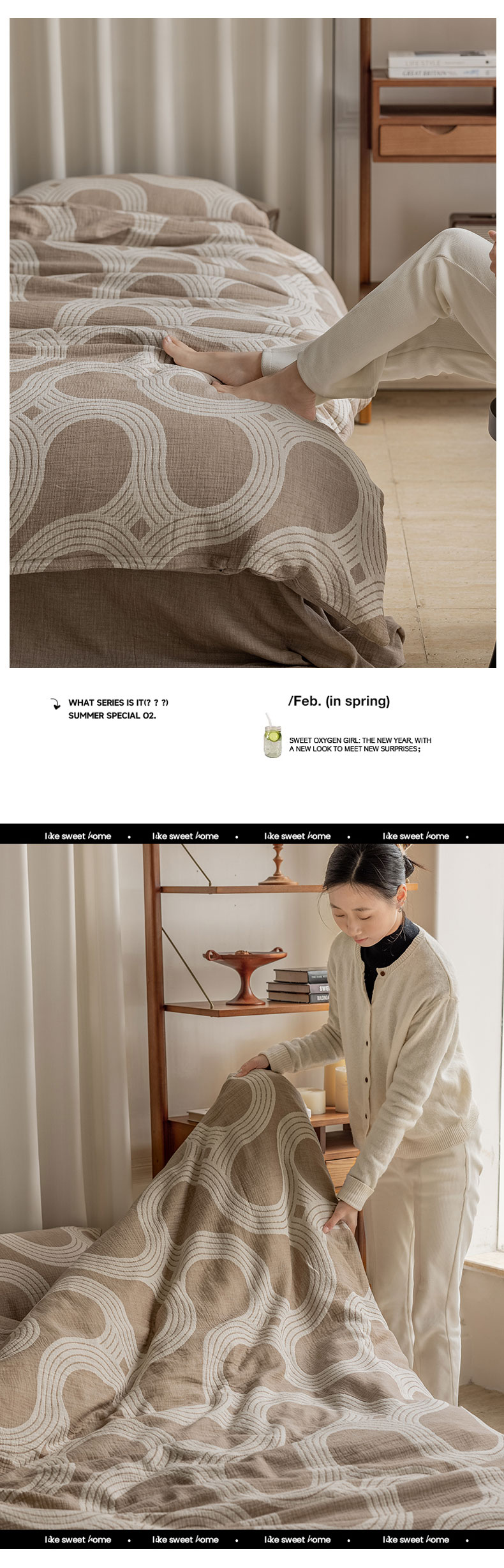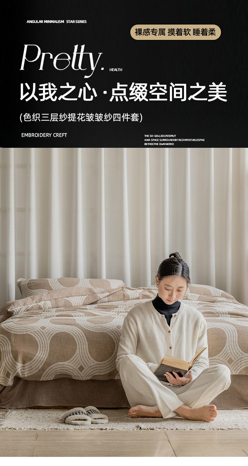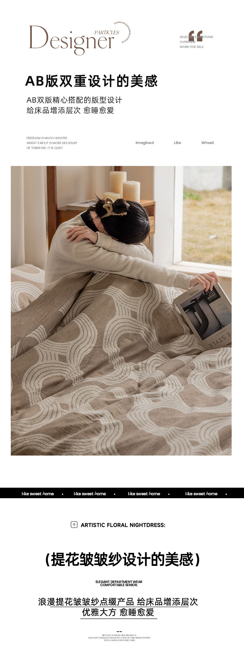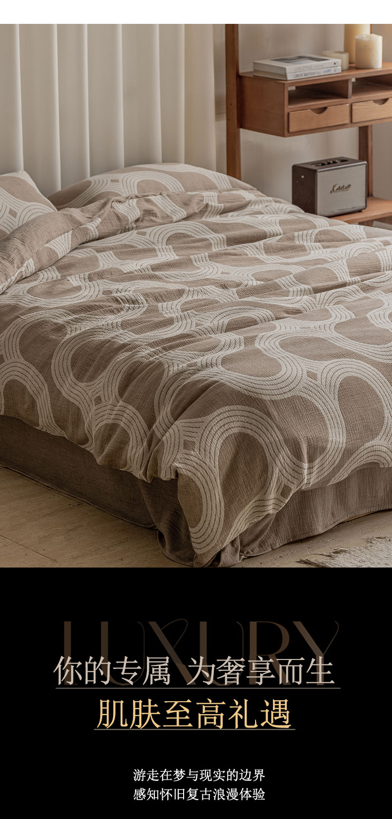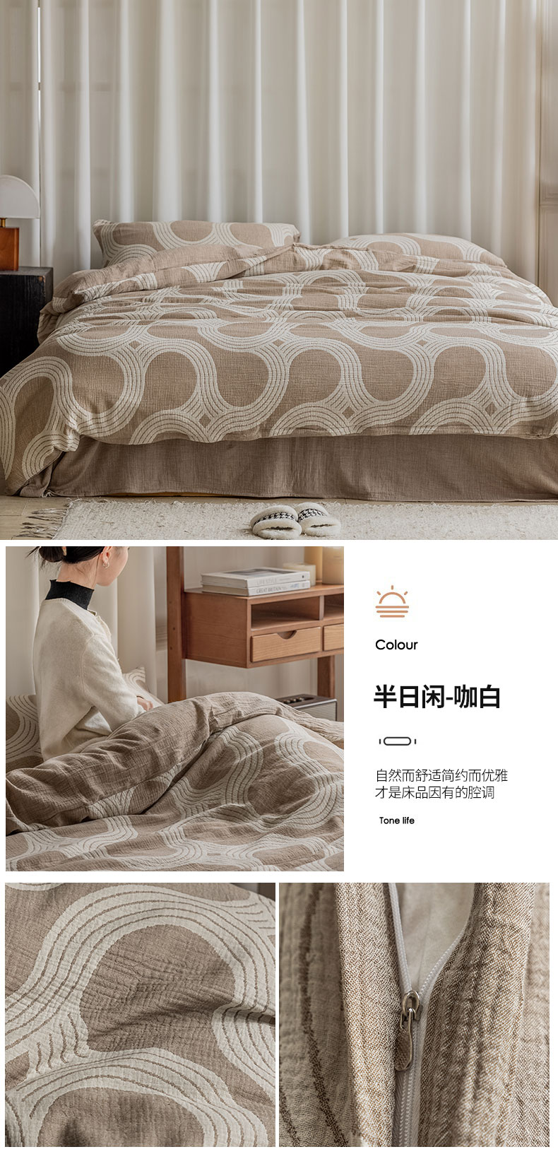 山舍家居 2024新款三层纱提花四件套半日闲 半日闲咖白