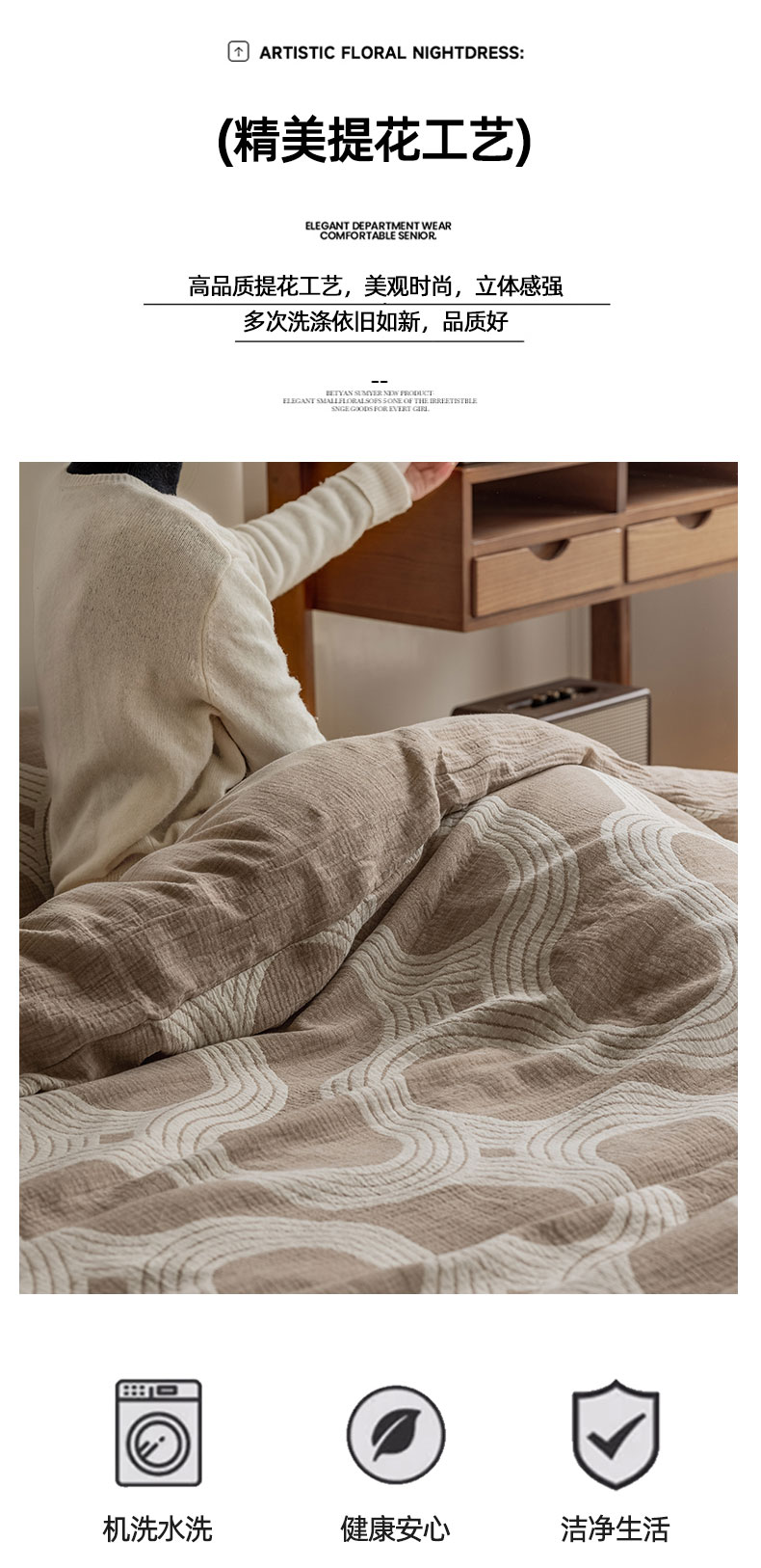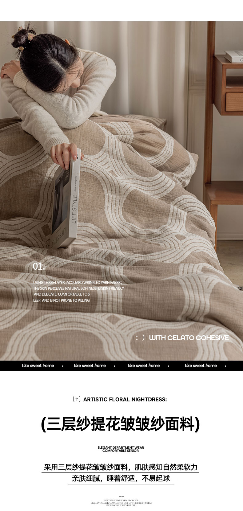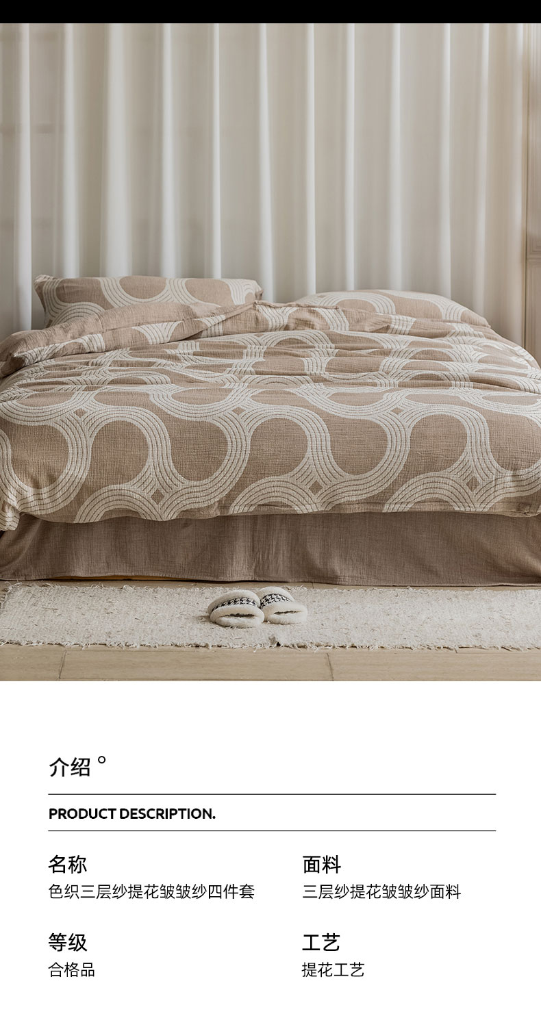 商品名称:山舍家居 2024新款三层纱提花四件套半日闲 半日闲咖白