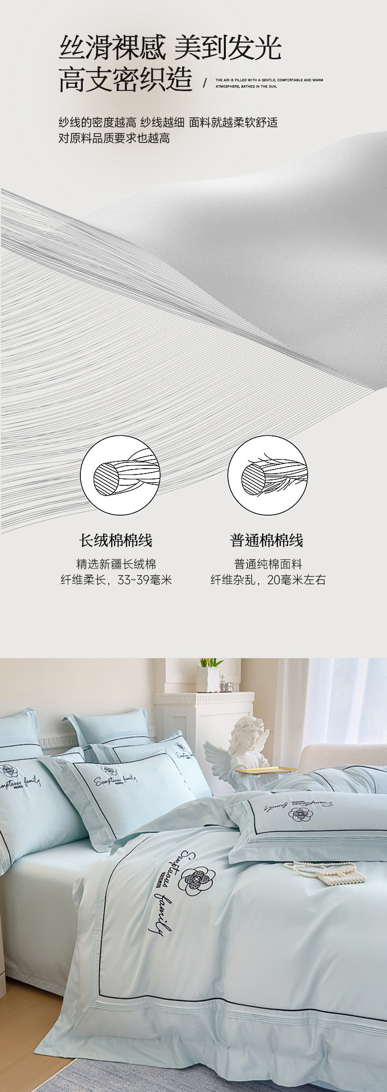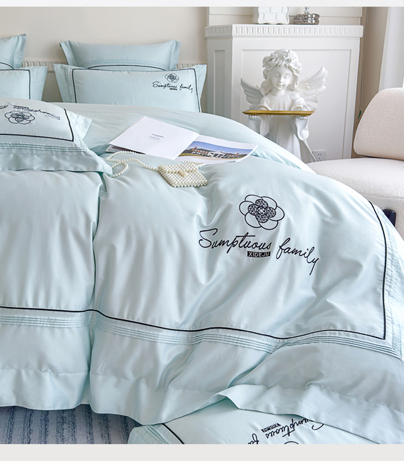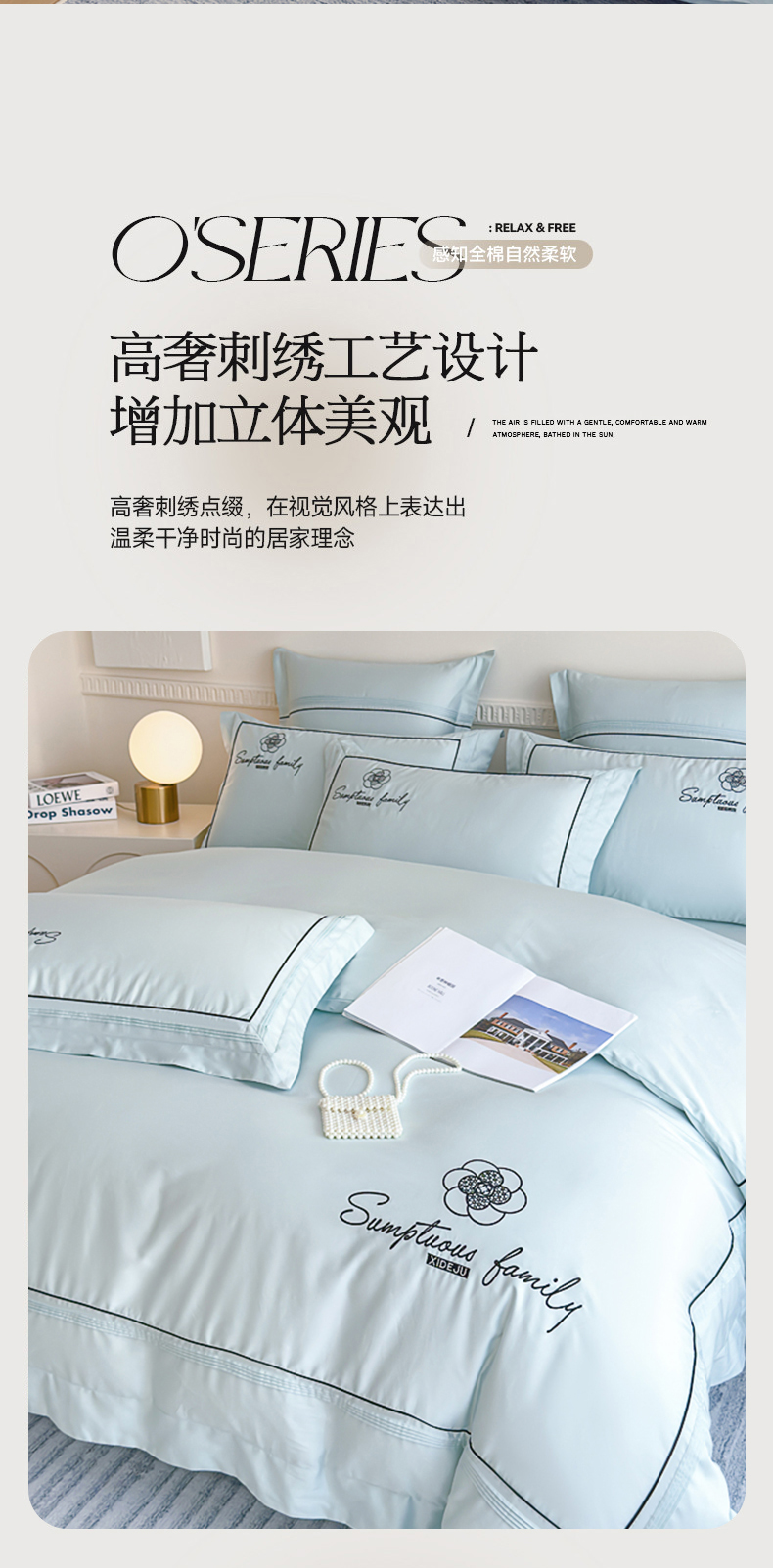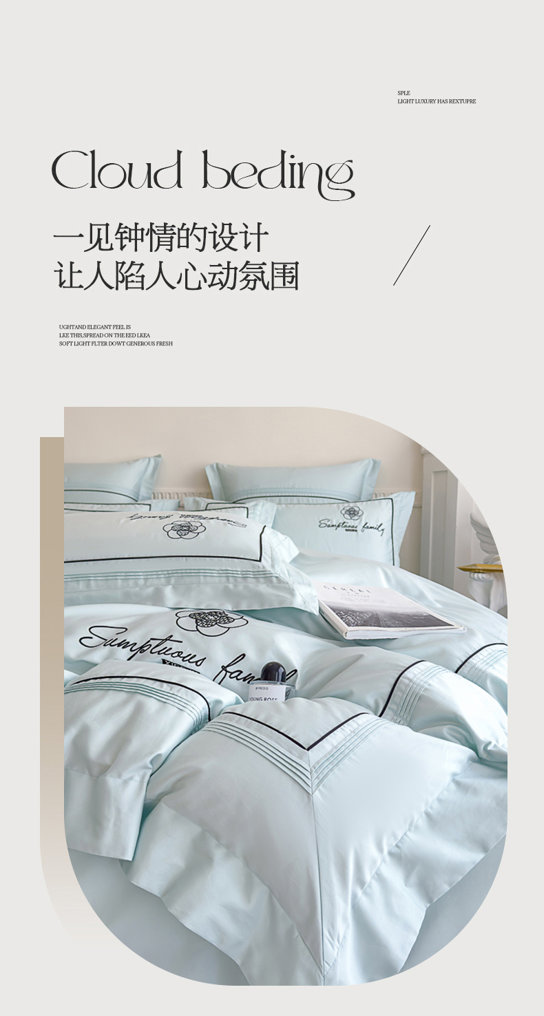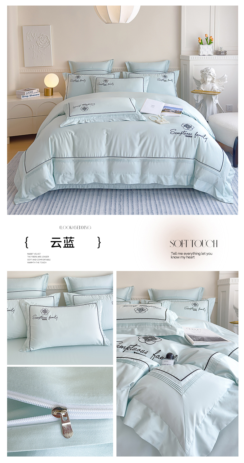 品家居 2025新款100支长绒棉刺绣四件套-香梵希(控价368) 香梵希-云蓝