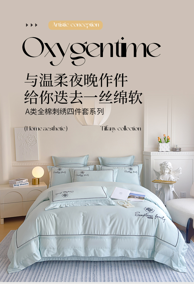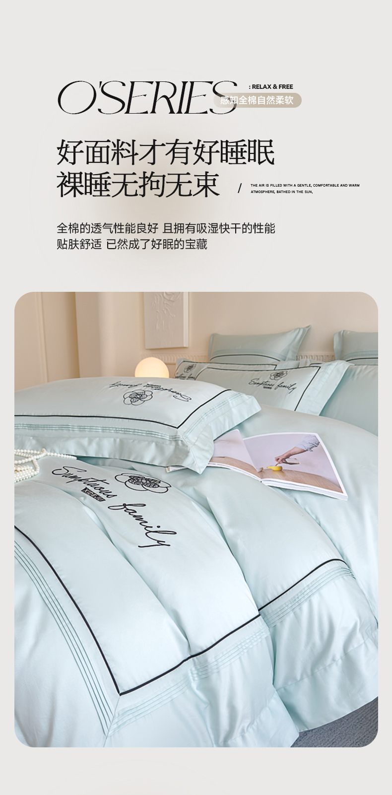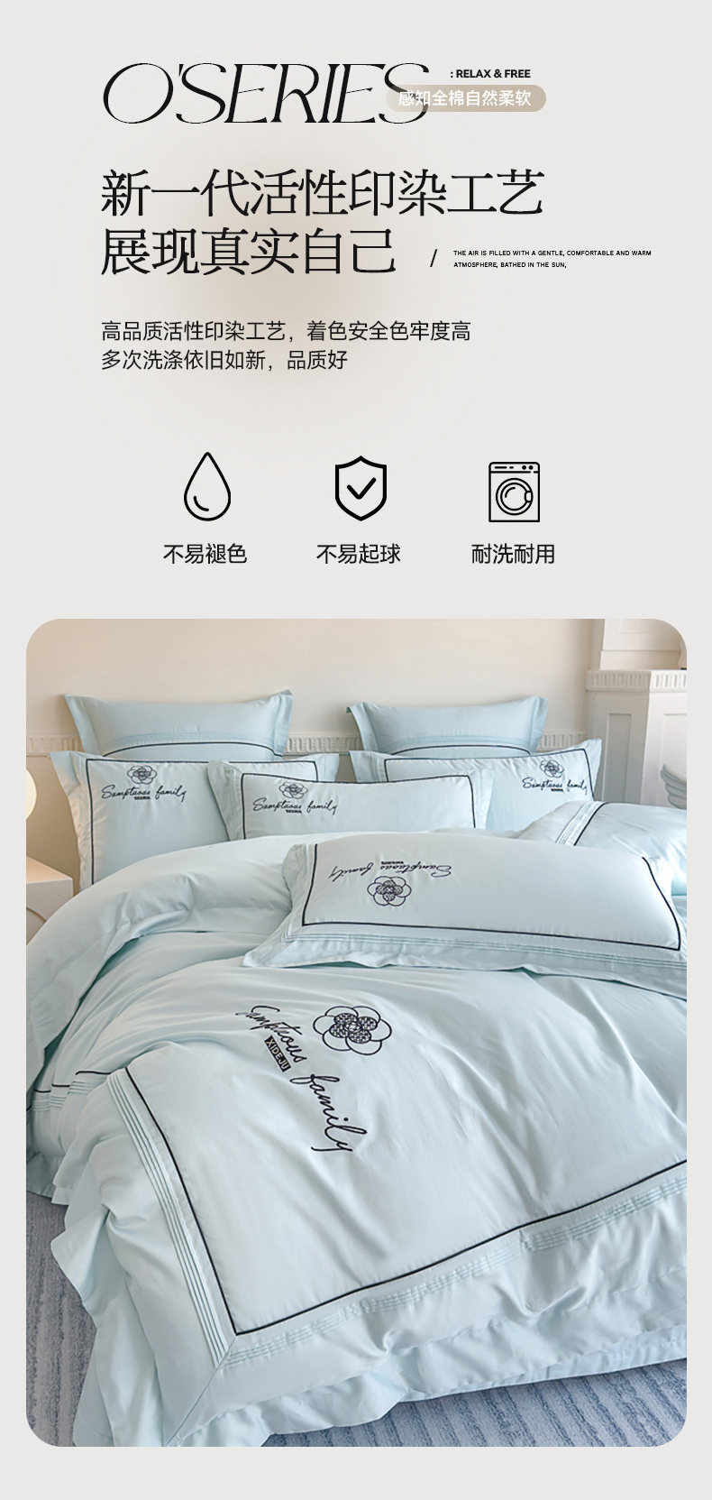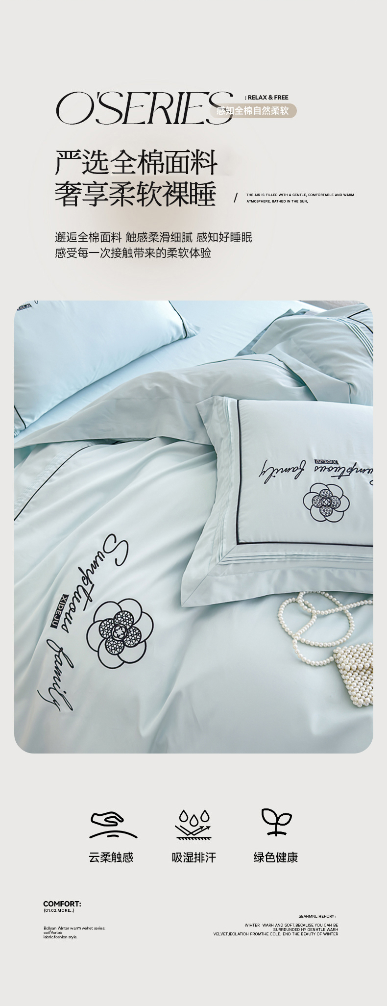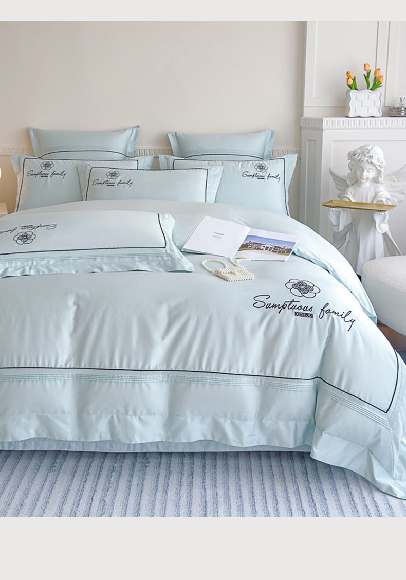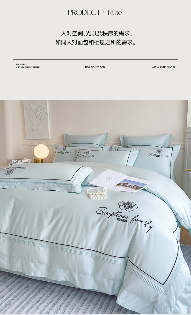 品家居 2025新款100支长绒棉刺绣四件套-香梵希(控价368) 香梵希-云蓝