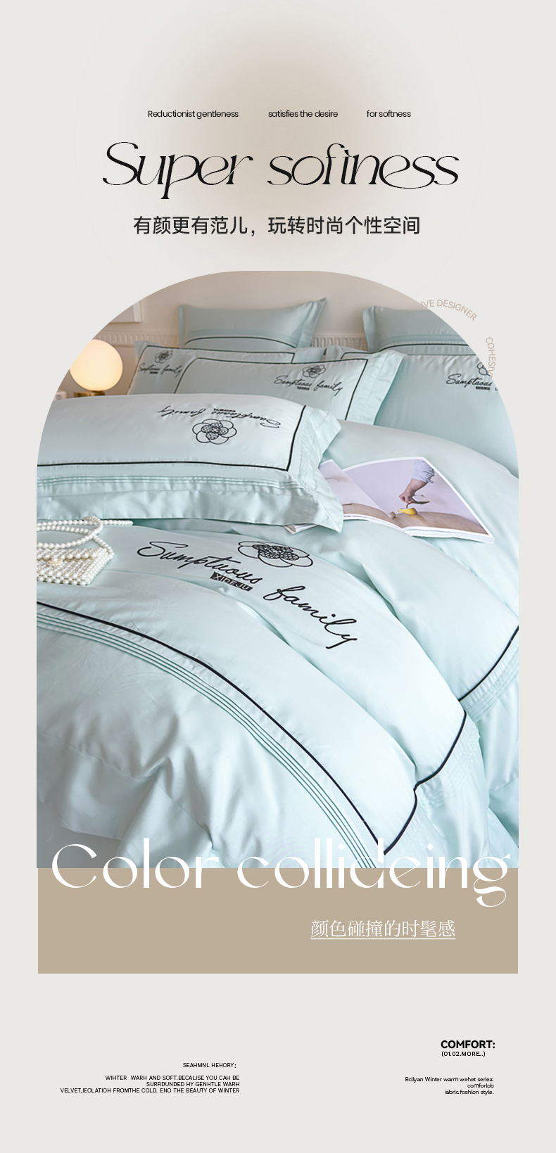 (总)品家居 2025新款180支长绒棉四件套可可系列,可可-粉,可可-蓝,可可-紫